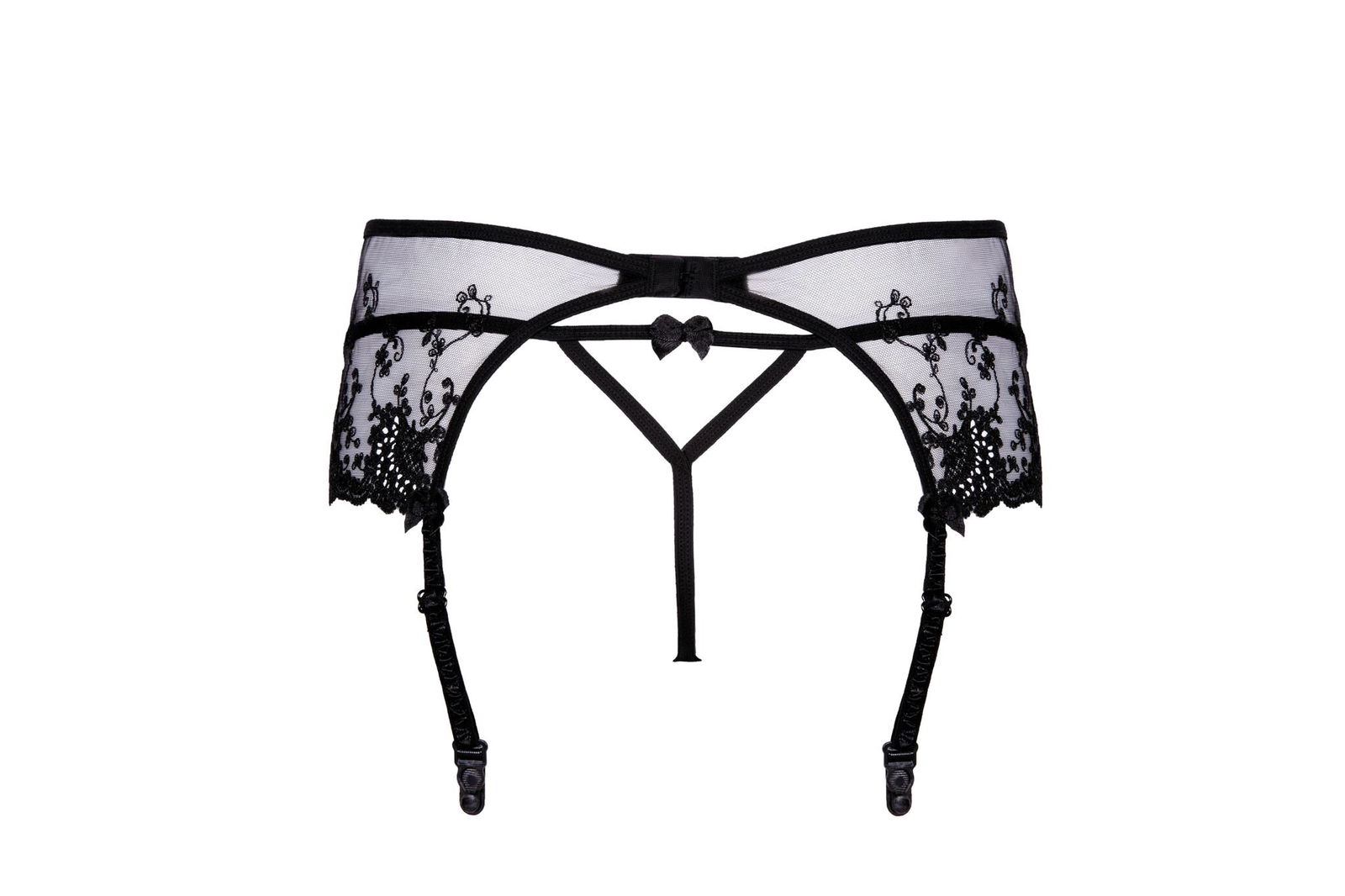 Rafinuotas trijų dalių jausmingo apatinio trikotažo rinkinys, kuris pravers ypatingomis progomis. Rinkinį sudaro liemenėlė, diržas su petnešėlėmis ir tamprės. Liemenėlė su pakietintais minkštais kaušeliais, pasiūta iš gražių juodų siuvinėtų nėrinių, papildyta satino intarpais, atrodo itin prabangiai. Ji turi reguliuojamus dirželius. Iškalbingas iki pasagų diržas vilioja išskirtiniu audiniu. Dailūs stringai nuostabiai puošia intymias vietas. Jie yra ant plonų dirželių (gumyčių) ir šiek tiek permatomi.
