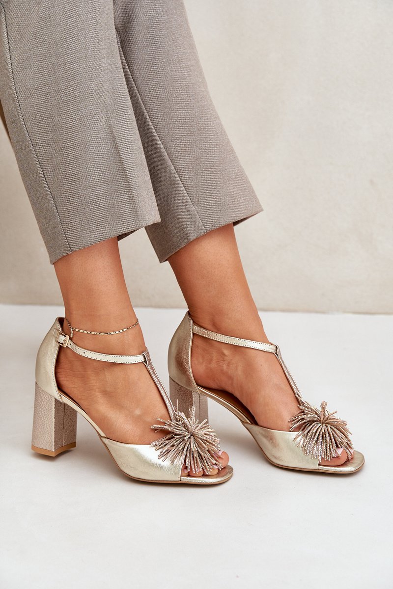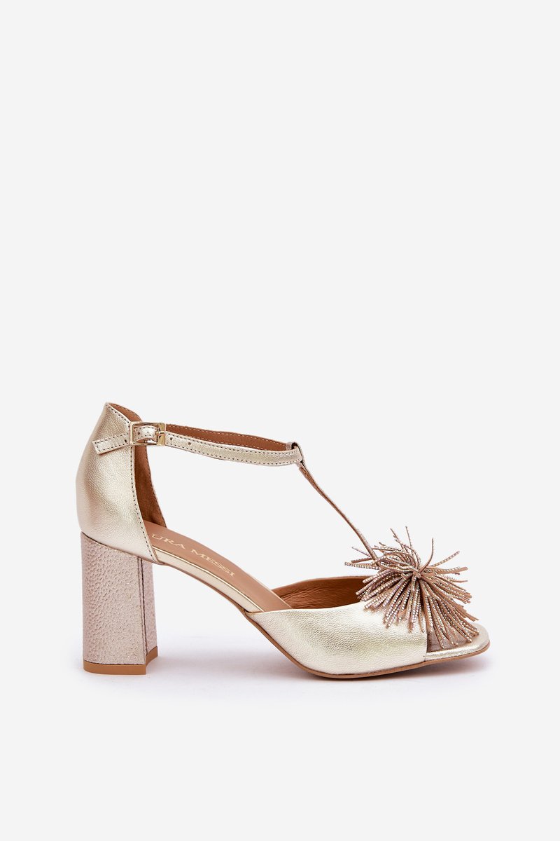 Aukso spalvos odinės basutės su puošniu kulnu Laura Messi