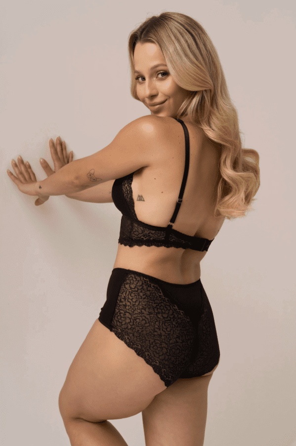 Šios juodos aukštu liemeniu nėriniuotos kelnaitės sukurtos moterims, kurios vertina komfortą, subtilų dizainą ir pasitikėjimą savimi kiekvieną dieną. Puikus pasirinkimas tiek kasdieniam dėvėjimui, tiek ypatingoms progoms.