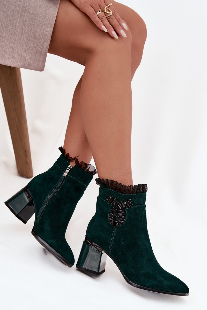 Stilingi žali zomšiniai aulinukai su dekoru – rudens elegancijai