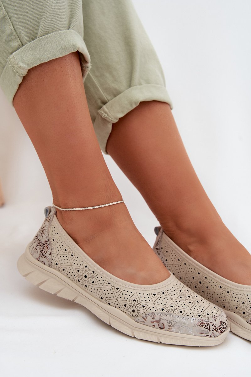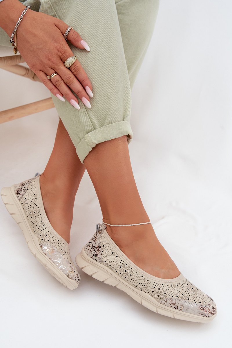 Balerinos moteriškos iš natūralios odos ažūrinės smėlio spalvos S.Barski