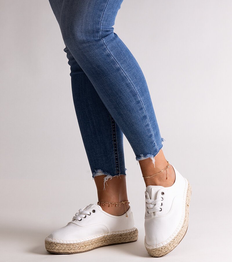 Baltos espadrilės Big Star LL274833 101“ sujungia komfortą ir novatorišką dizainą. Pagamintos su platforma, jos užtikrina stabilumą ir patogumą avint. Suvarstomos guma, todėl idealiai prisitaiko prie pėdos. Jų modernus stilius taps puikiu vasaros garderobo papildymu.