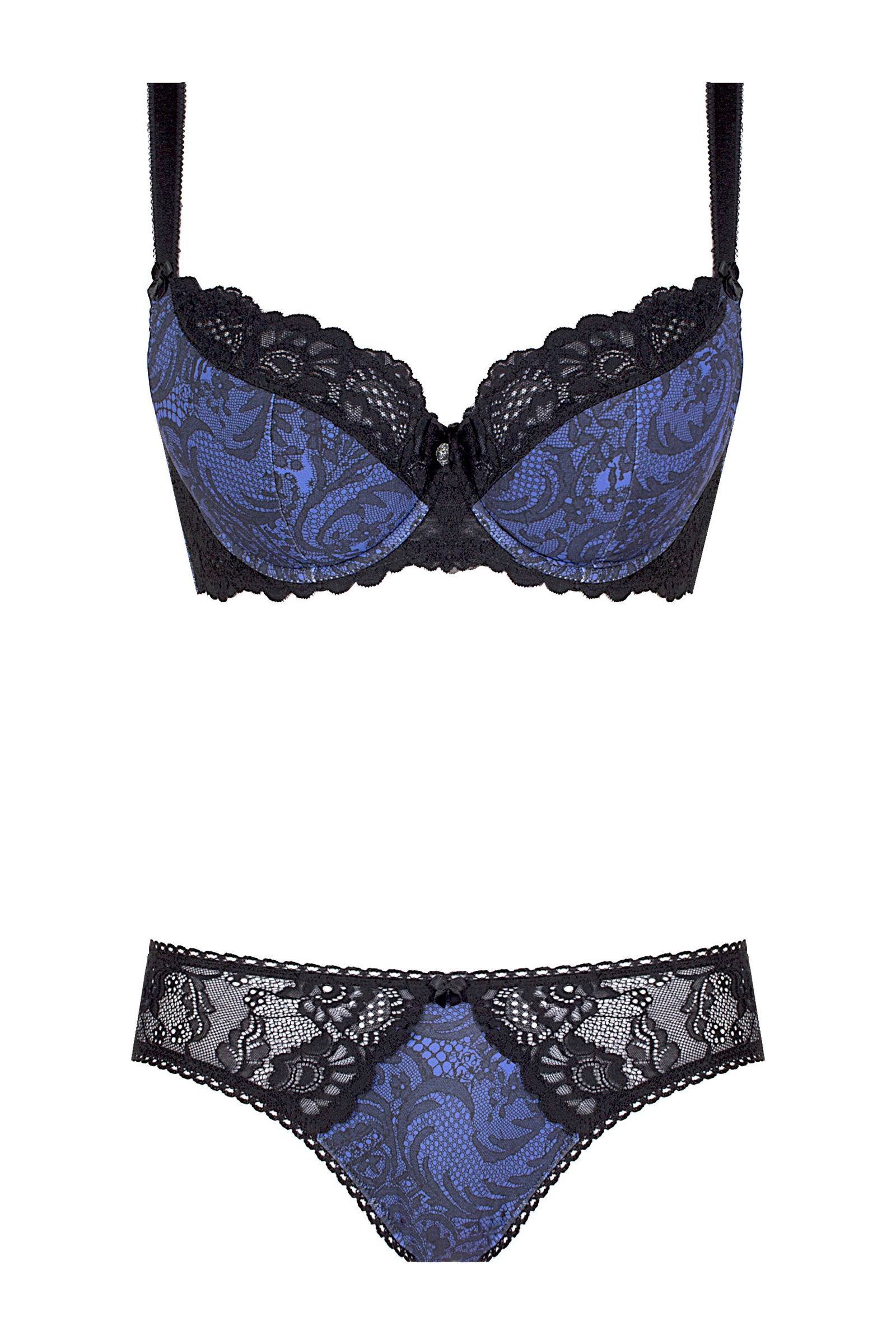 Užburiantis kobalto atspalvis... Gėlių raštas tiesiai iš gražių indiškų ornamentų. Ši liemenėlė - tai moteriško grožio pagyrimas, kurį pabrėžia dailus raštas ir spalva. Ji iš karto išsiskiria iš kitų. Juodos spalvos tiulio priedai ties iškirpte sustiprina elegancijos ir gero skonio įspūdį. Pusiau paminkštinto kirpimo liemenėlė su pakietinimais gerai pakelia ir formuoja krūtinę.