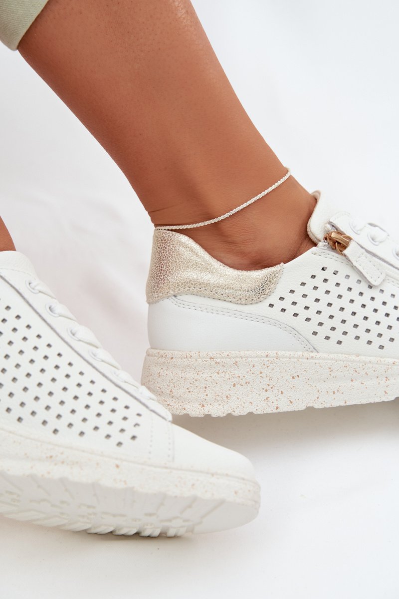 Batai moteriški iš natūralios odos su užtrauktuku balta-auksinė Kalorinne