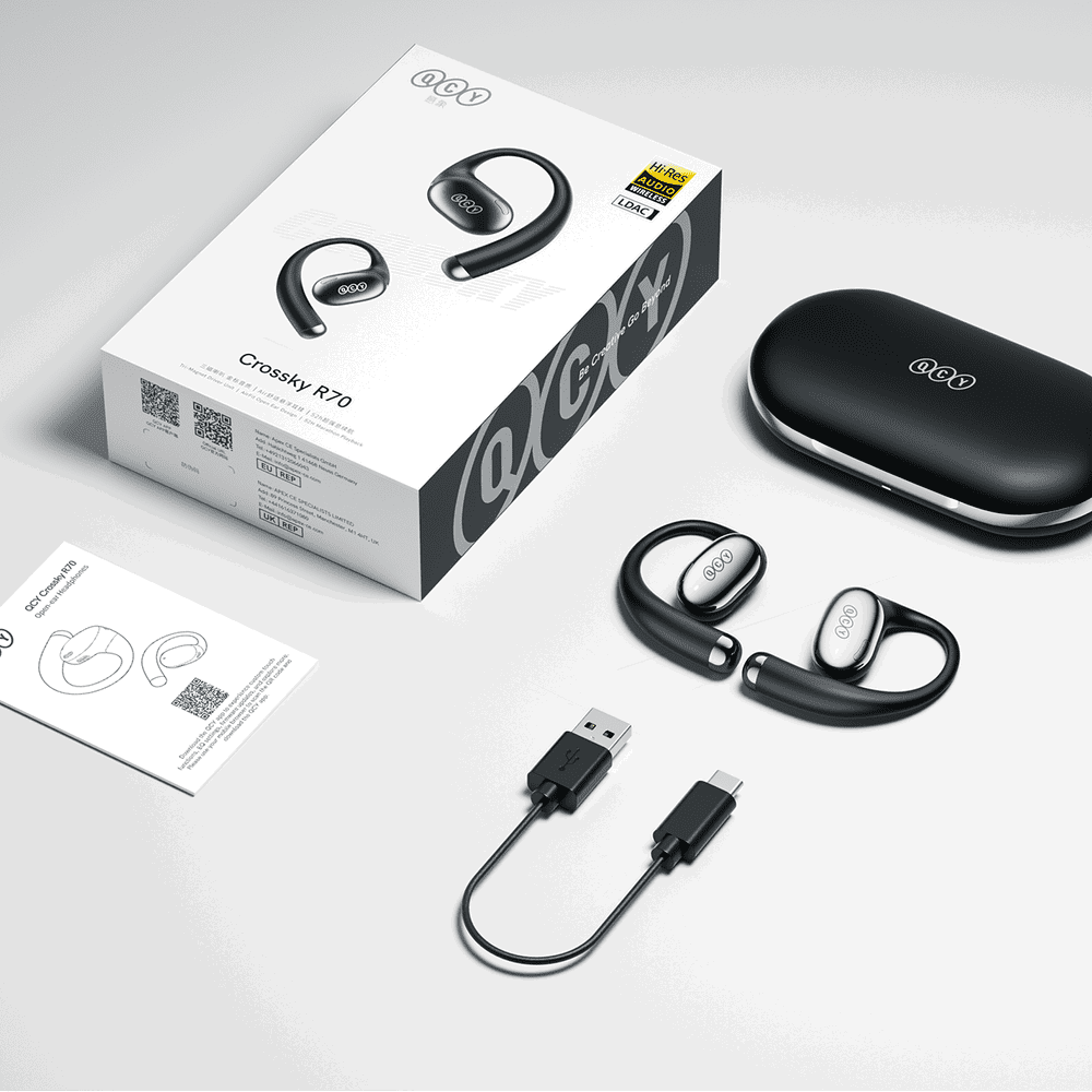QCY Crossky R70 – tai atviros konstrukcijos belaidės ausinės su lankstomais ausų kabliukais, sukurtos patogiam ir saugiam naudojimui kasdienėje veikloje ar treniruotėse. Palaikoma LDAC technologija ir Hi-Res Audio sertifikatas užtikrina aukštos kokybės, detalią ir dinamišką garso patirtį. IPX5 atsparumas bei iki 52 valandų veikimo laikas su dėklu leidžia naudotis ausinėmis net ir sudėtingomis sąlygomis.