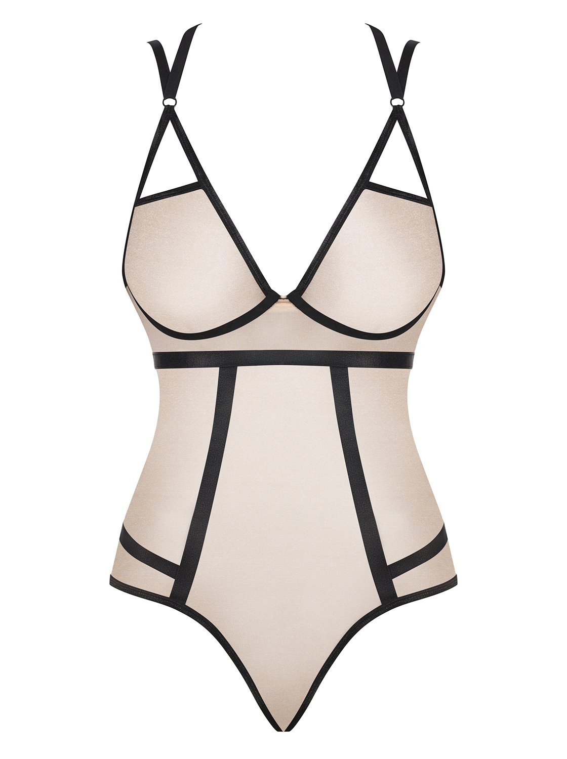 Pasiruoškite kažkam tikrai nepaprastam! Prieš jus - Nudelia seksualus kostiumėlis, idealiai tinkantis vasarai, puikiai tinkantis tiek pasipuošti, tiek akimirkoms, skirtoms tik jums dviems. Kostiumėlis pagamintas iš kūno spalvos tinklelio su akį traukiančiais spalvotais apvadais. Puošmenos intriguojančiai plaukia per kūną ir sumaniai pabrėžia tai, ką turėtų. Minkšti kaušeliai, dirželiais reguliuojami, tarpkojyje patogus užsegimas. Nugaros su kryžminėmis petnešėlėmis, puikus pateikimas. Sudėtis Sudėtis 90 % poliamidas, 10 % elastanas.