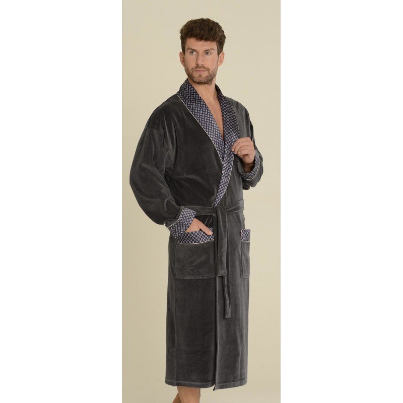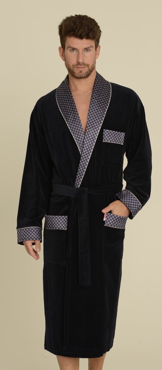 Stilingas, prabangus chalatas išskirtiniam vyrui. Klasikinio kirpimo su kaklaraiščiu ties juosmeniu ir retro stiliaus dekoratyvine apdaila. Ilgesas už kelių. Skaros apykaklė ir kišenės – praktiškai ir grakščiai! Chalatas tikrai jums tarnaus ilgai. Puikus, veliūrinis audinys. Sudėtis 80 % medvilnės, 20 % poliamido.
