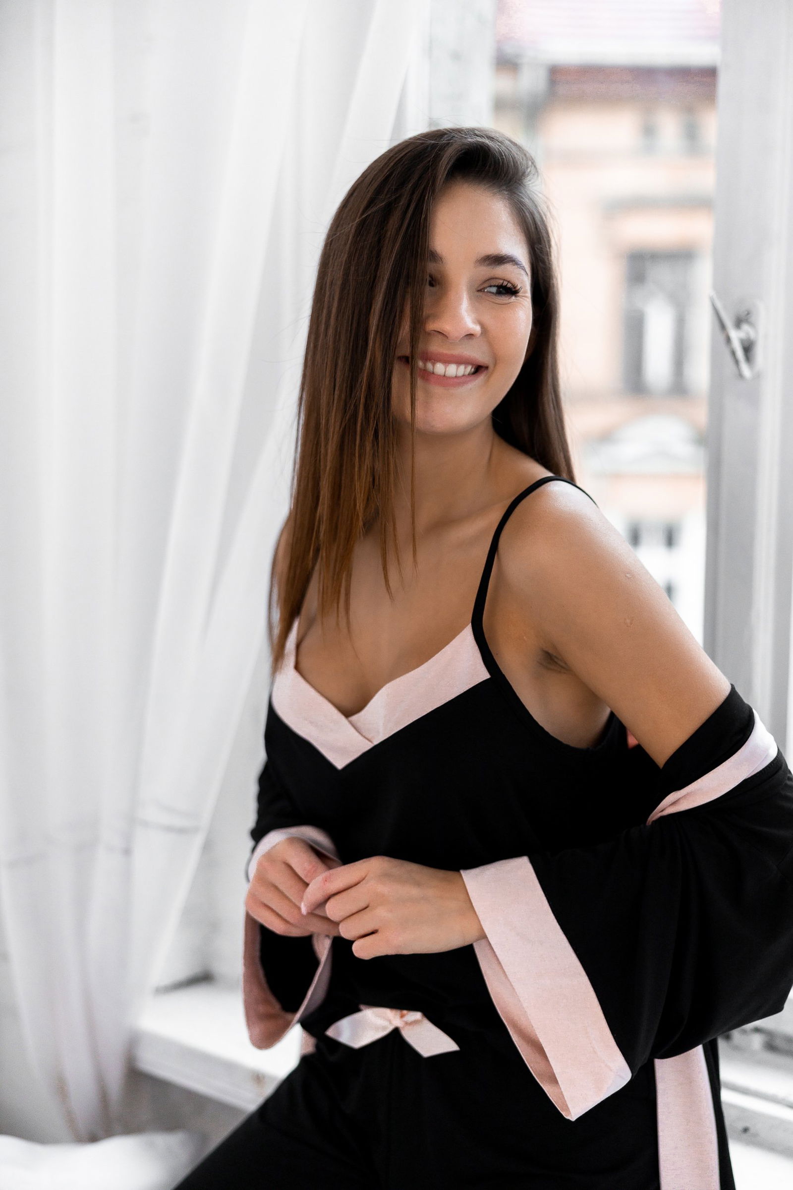 Moteriškas Lizzie chalatas iš minkštos viskozės su šviesiai rausva apdaila suteikia elegancijos ir komforto pojūtį. Puikiai tinka ramiam rytui su kava ar vakaro poilsiui su pižama – stilingas pasirinkimas moterims, vertinančioms švelnumą ir estetiką.