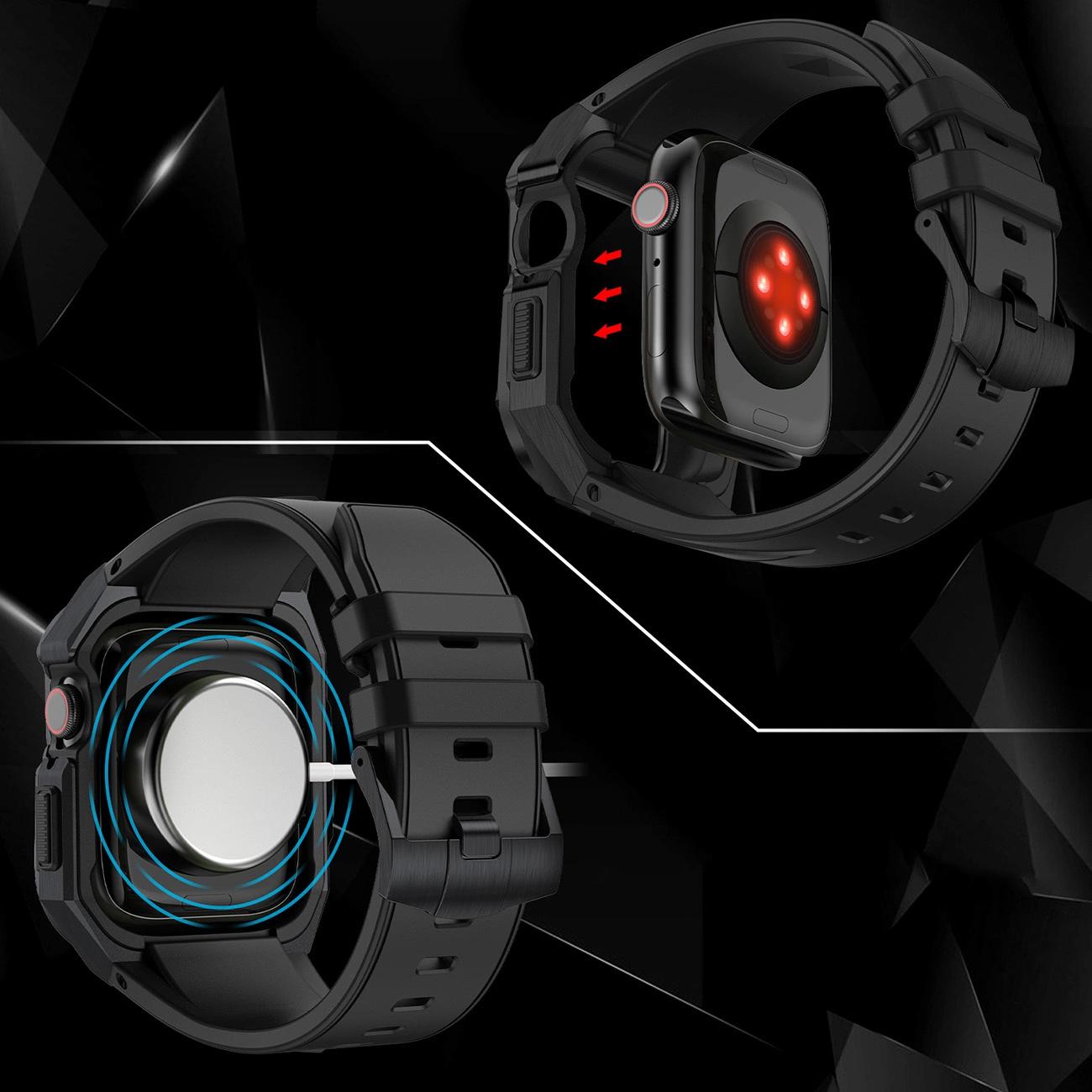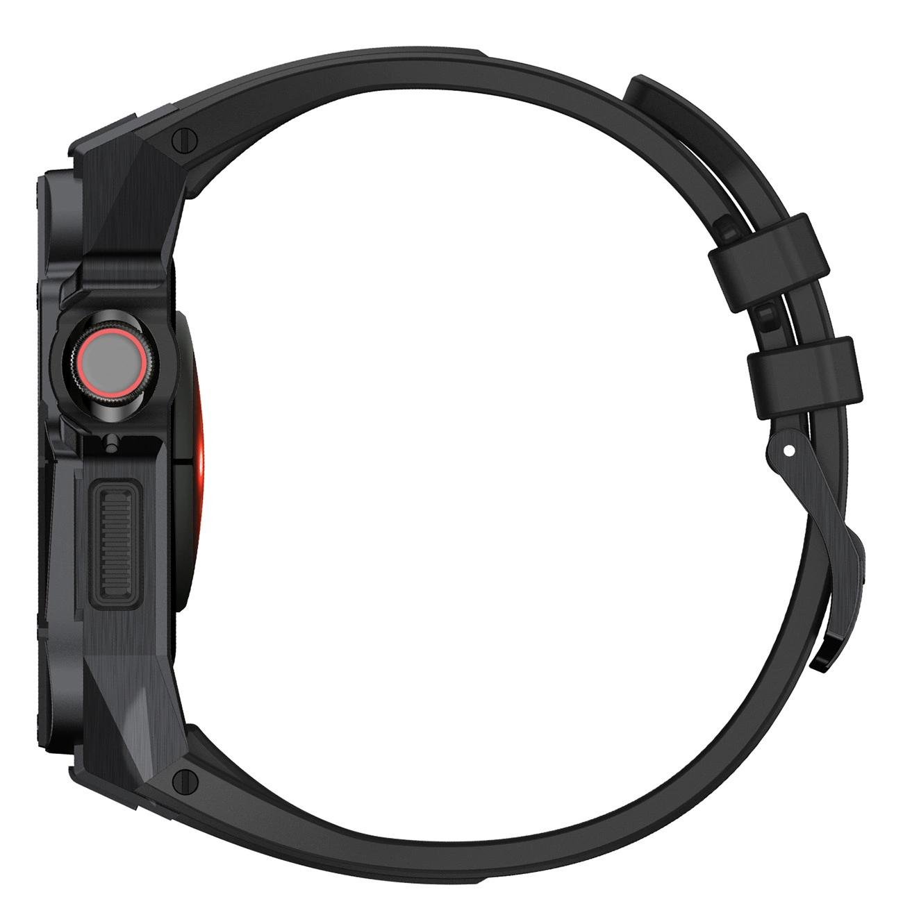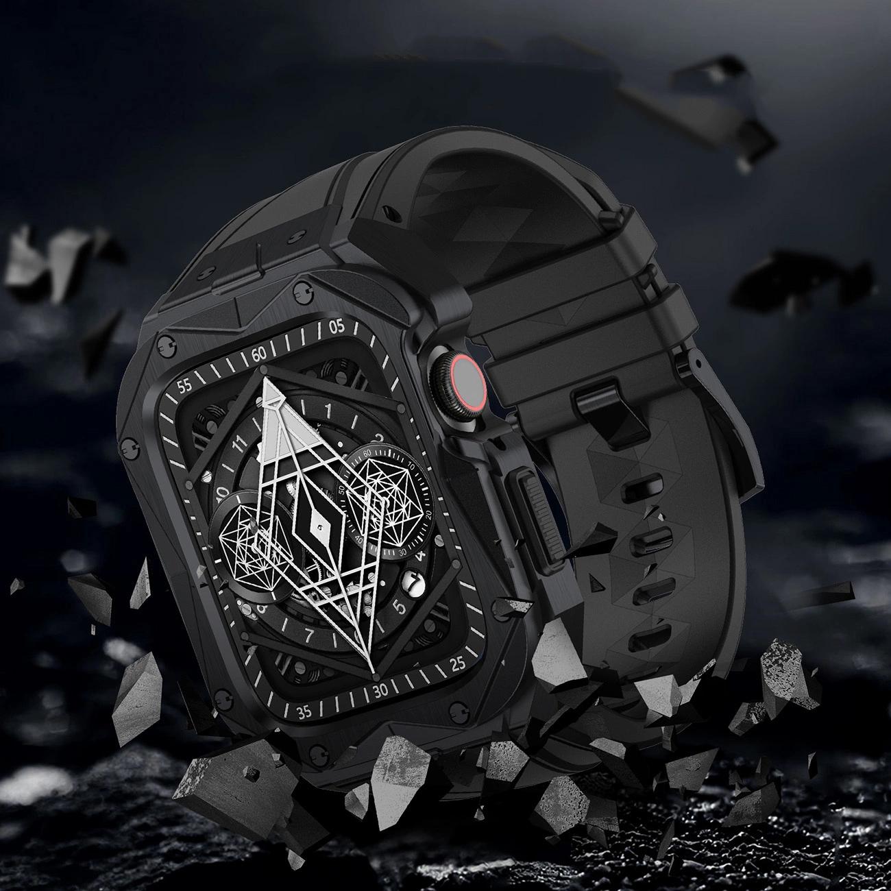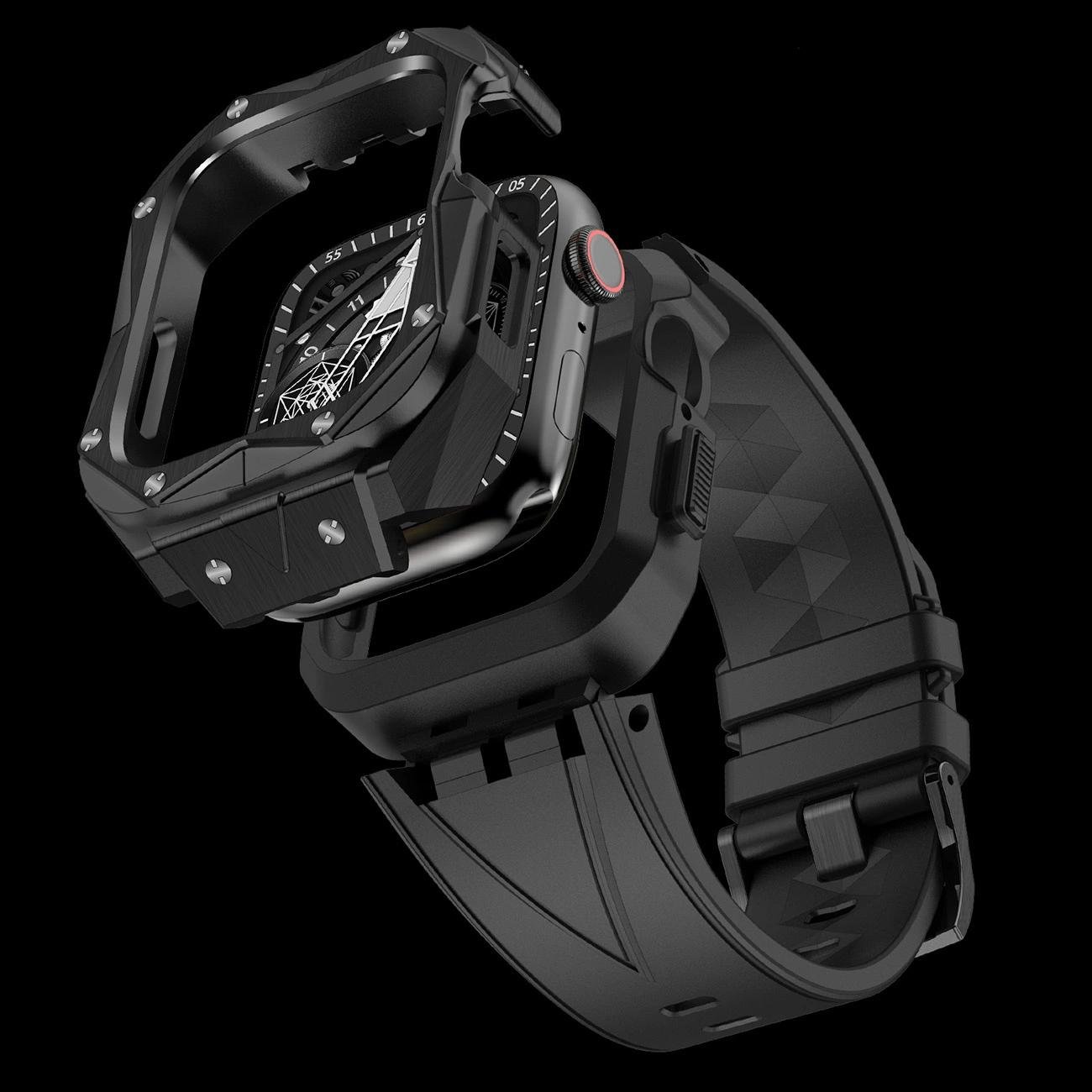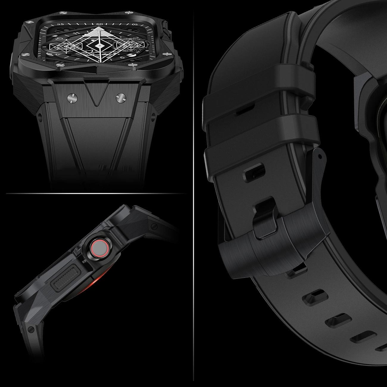 dėklas Apple Watch 9, 8, 7 (45 mm), pagamintas iš nerūdijančio plieno su dirželiu, juodas