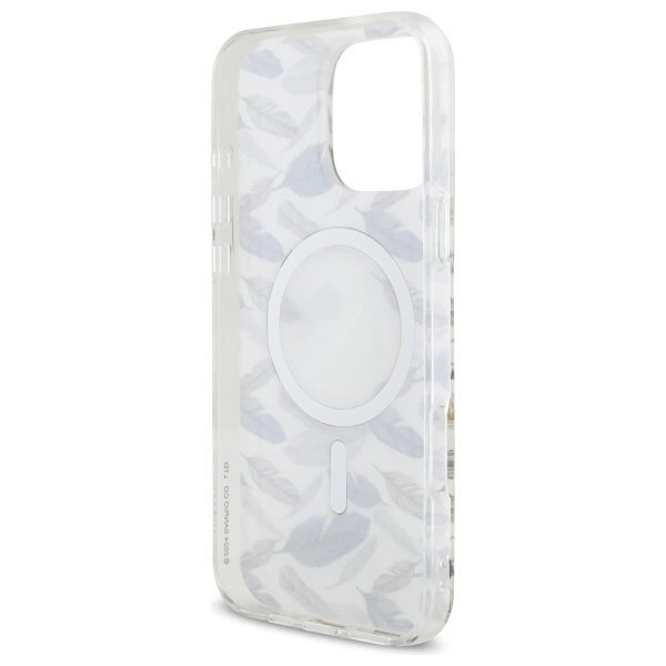 Šis dėklas išsiskiria subtiliu plunksnų ir auksiniu apskritimu MagSafe“ dizainu, kuris ne tik suteikia stiliaus, bet ir yra funkcionalus, nes suteikia galimybę įkrauti belaidžiu būdu.