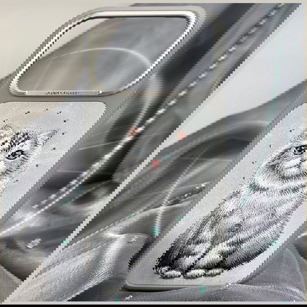 Dėklas MagSafe su siuvinėtu katinu pilkas Nimmy