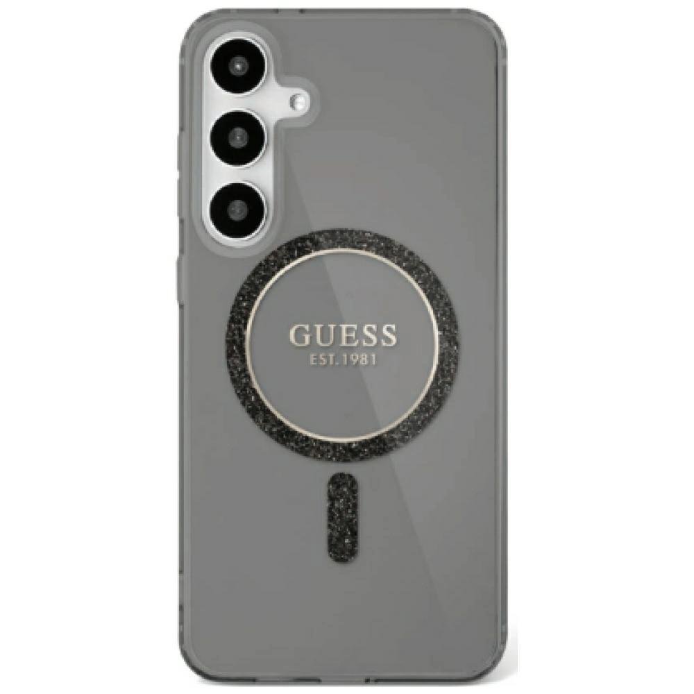 Guess Glitter Circle Classic Logo MagSafe dėklas Samsung Galaxy S25 telefonui – Elegancija ir apsauga