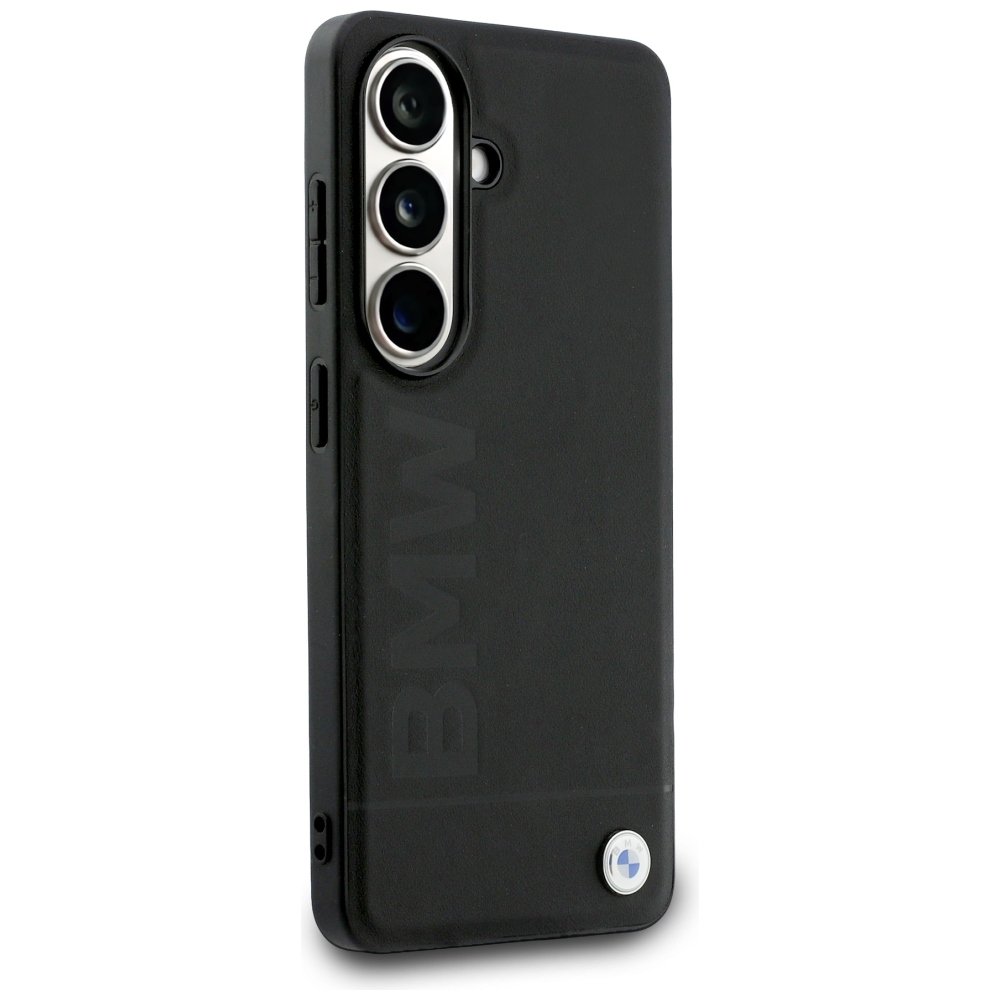 Dėklas Samsung Galaxy S26 iš natūralios odos BMW Leather Hot Stamp, juodas