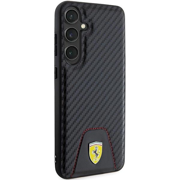 Ferrari Carbon dygsniuotas apatinis dėklas, skirtas Samsung Galaxy S24+ - juodas