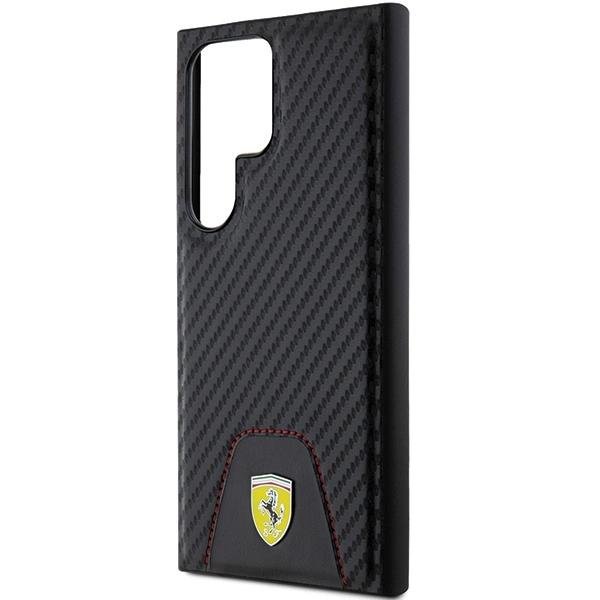 Ferrari Carbon dygsniuotas apatinis dėklas, skirtas Samsung Galaxy S24 Ultra - juodas