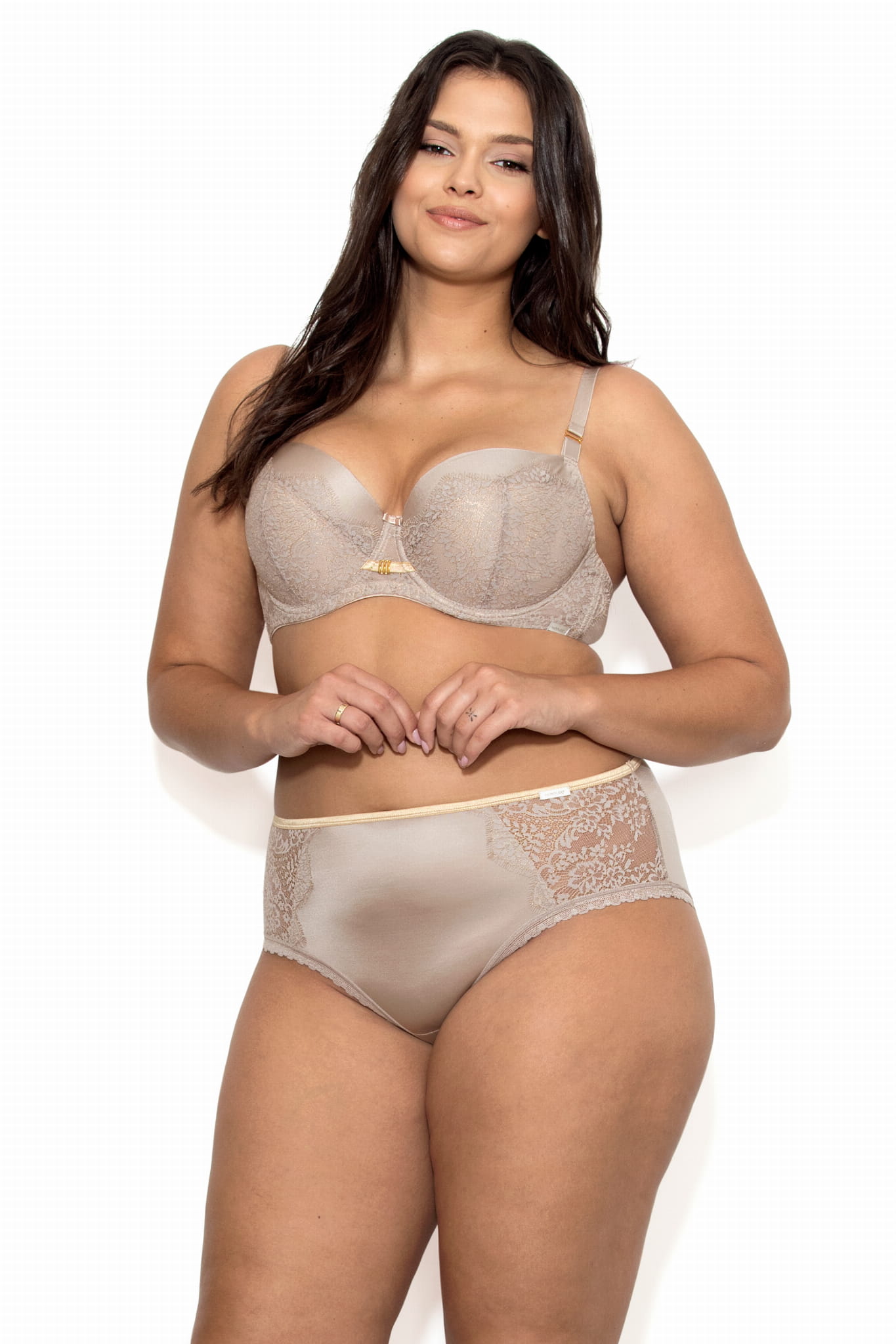Išskirtinė neįtikėtinai stilingos spalvos liemenėlė su paminkštinimais. Padengta subtiliais nėriniais pagal modelio spalvą. Nėriniuoti kaušeliai, apačioje pamušaluoti papildomu audinio sluoksniu, lygiai užbaigti viršuje. Struktūra veiksmingai pabrėžia krūtinę, sukurdama gražią, gundančią iškirptę. Stabili grandinė, su vertikaliais banginiais taip pat ir šonuose. Sudėtis Sudėtis 60% poliamidas, 16% poliesteris, 10% medvilnė, 7% elastanas, 7% kita.