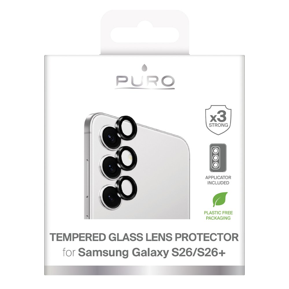 Galinės kameros apsauginis stiklas S26/S26 Plus, juodas rėmelis Puro