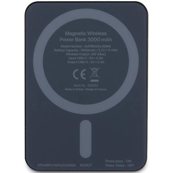 Guess MagSafe 4G Strassed Metal Logo 5W 3000mAh indukcinis powerbankas - juodas