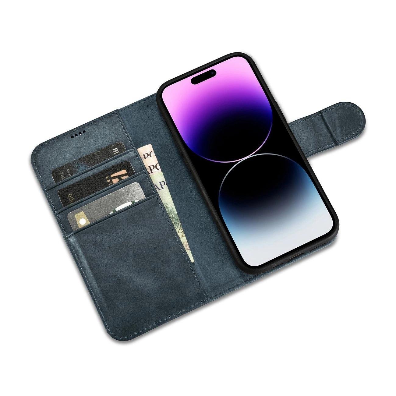 iCarer Oil Wax piniginės dėklas 2in1 iPhone 14 Pro Max odinis flip dangtelis Anti BU)