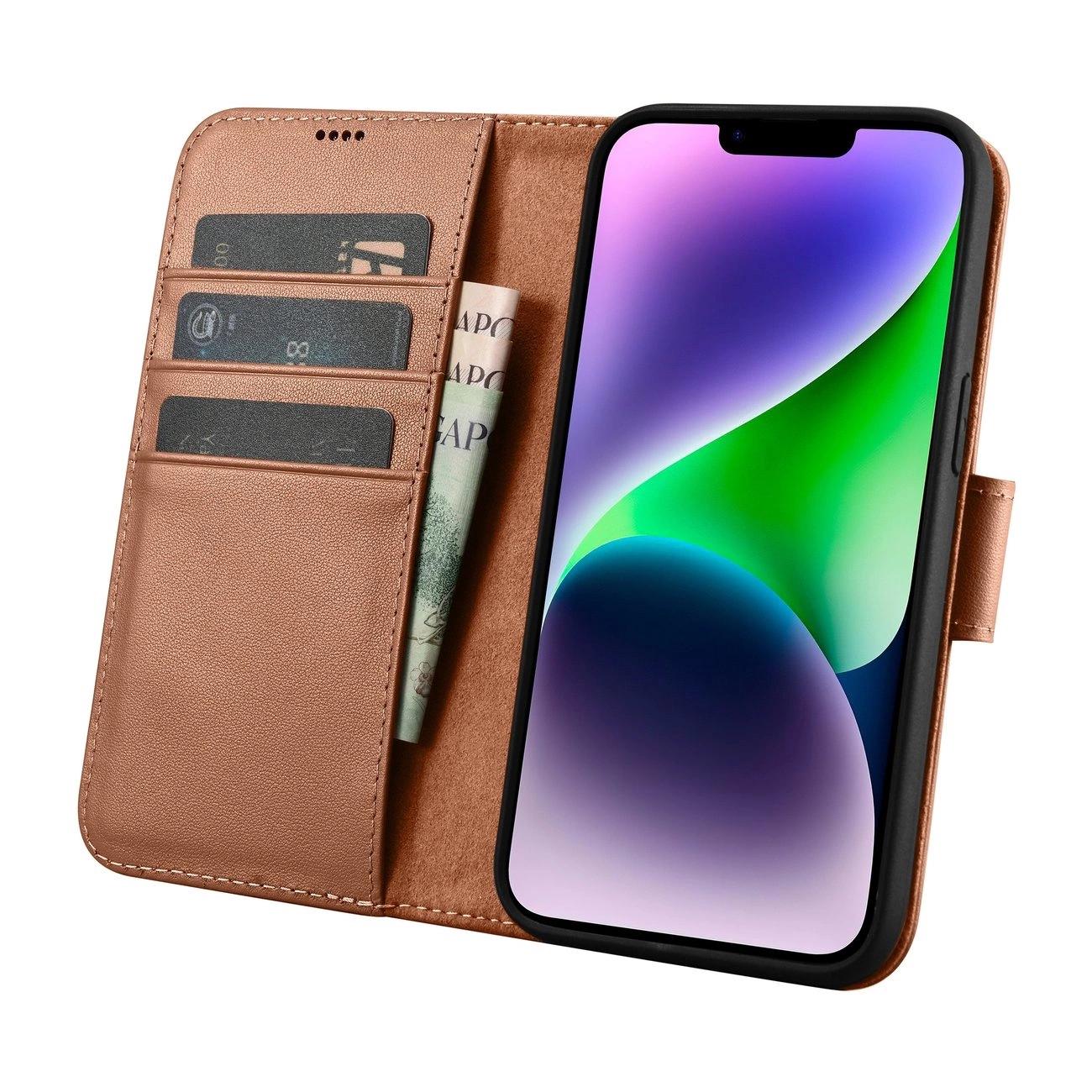 iCarer piniginės dėklas iPhone 14 Plus 2in1 dangtelis iPhone 14 Plus , apsaugotas nuo RFID, odinis flip dėklas, rudos spalvos (WMI14220727-BN)