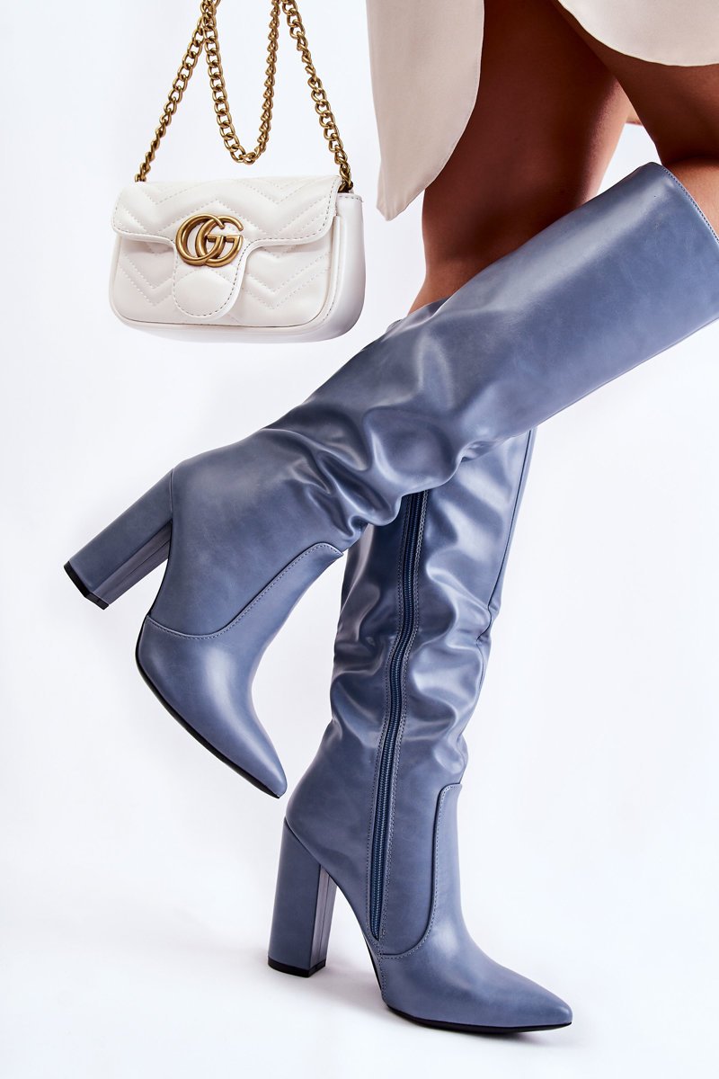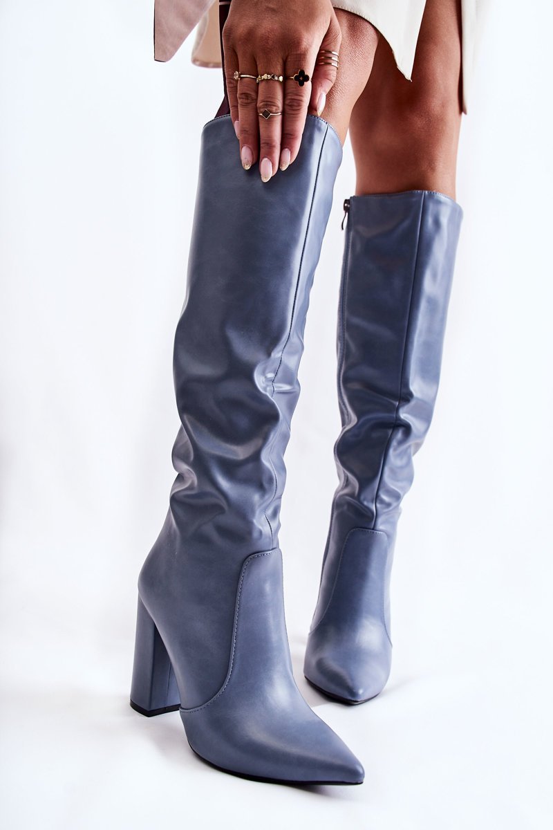 Klasikiniai ilgaauliai batai iš ekologiškos odos. Batai turi smailią nosytę. Užsegamas užtrauktuku per visą viršutinės dalies aukštį. Jie turi standų kulnų skaitiklį. Stulpelio formos kulnas pakels figūrą ir optiškai pailgins kojas. Vidpadis pagamintas iš eko odos. Šis modelis tiks daugeliui stilių. Renkantis dydį, naudokite dydžių lentelę.