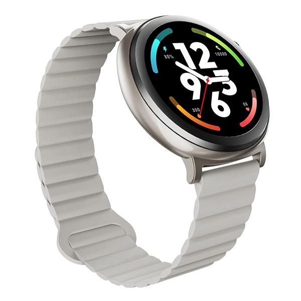 Sodrus sidabrinis atspalvis suteikia laikrodžiui modernumo ir universalumo. Apvalus ekranas su siaurais rėmeliais atrodo elegantiškai tiek prie sportinės aprangos, tiek prie klasikinio įvaizdžio.