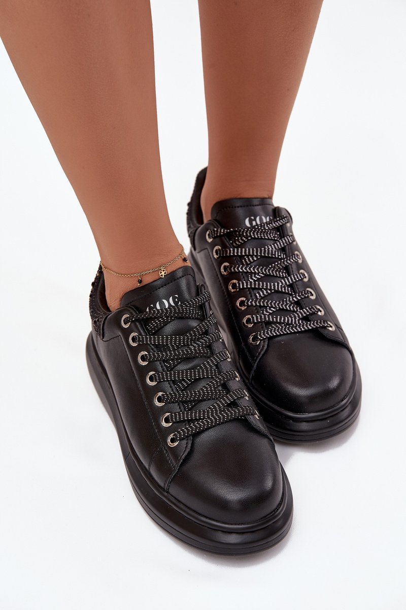 Juodi moteriški sportbačiai iš natūralios odos GOE