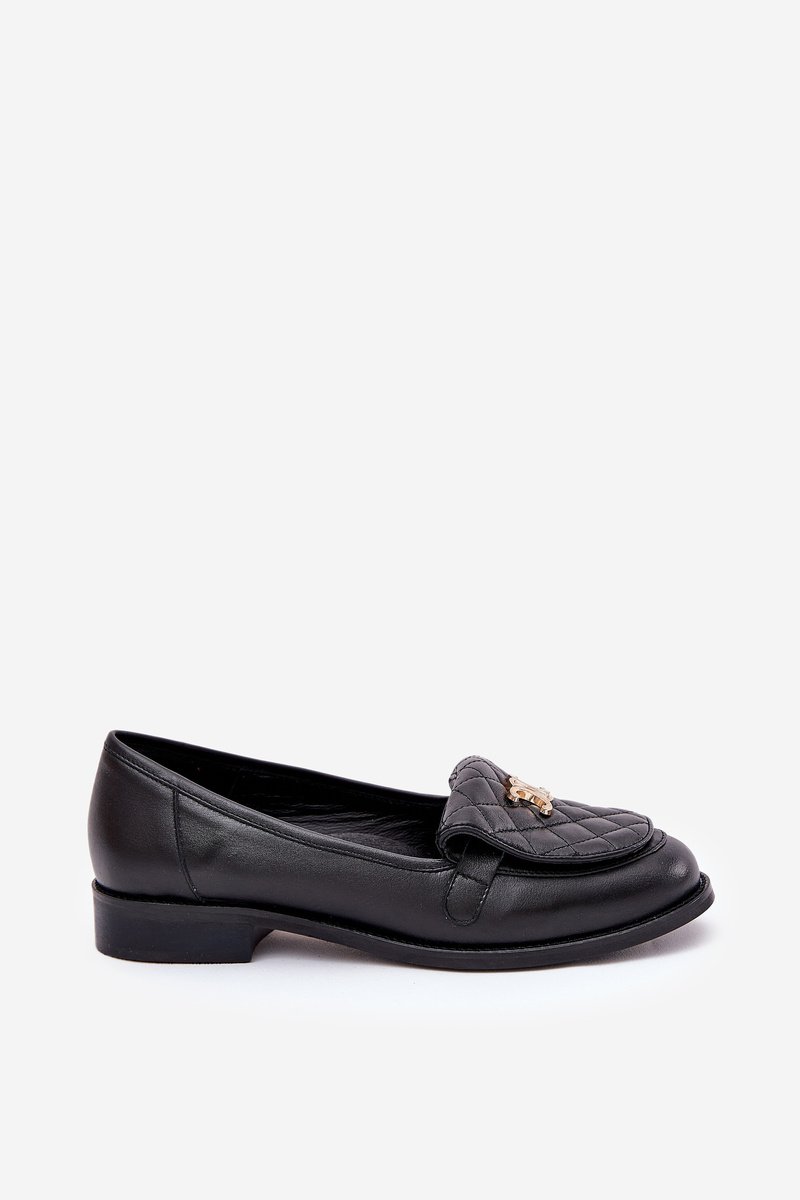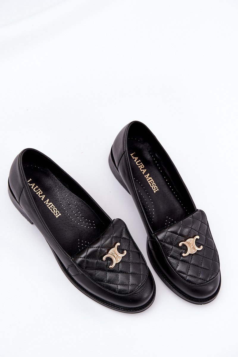 Juodi odiniai mokasinai su auksine puošmena Laura Messi