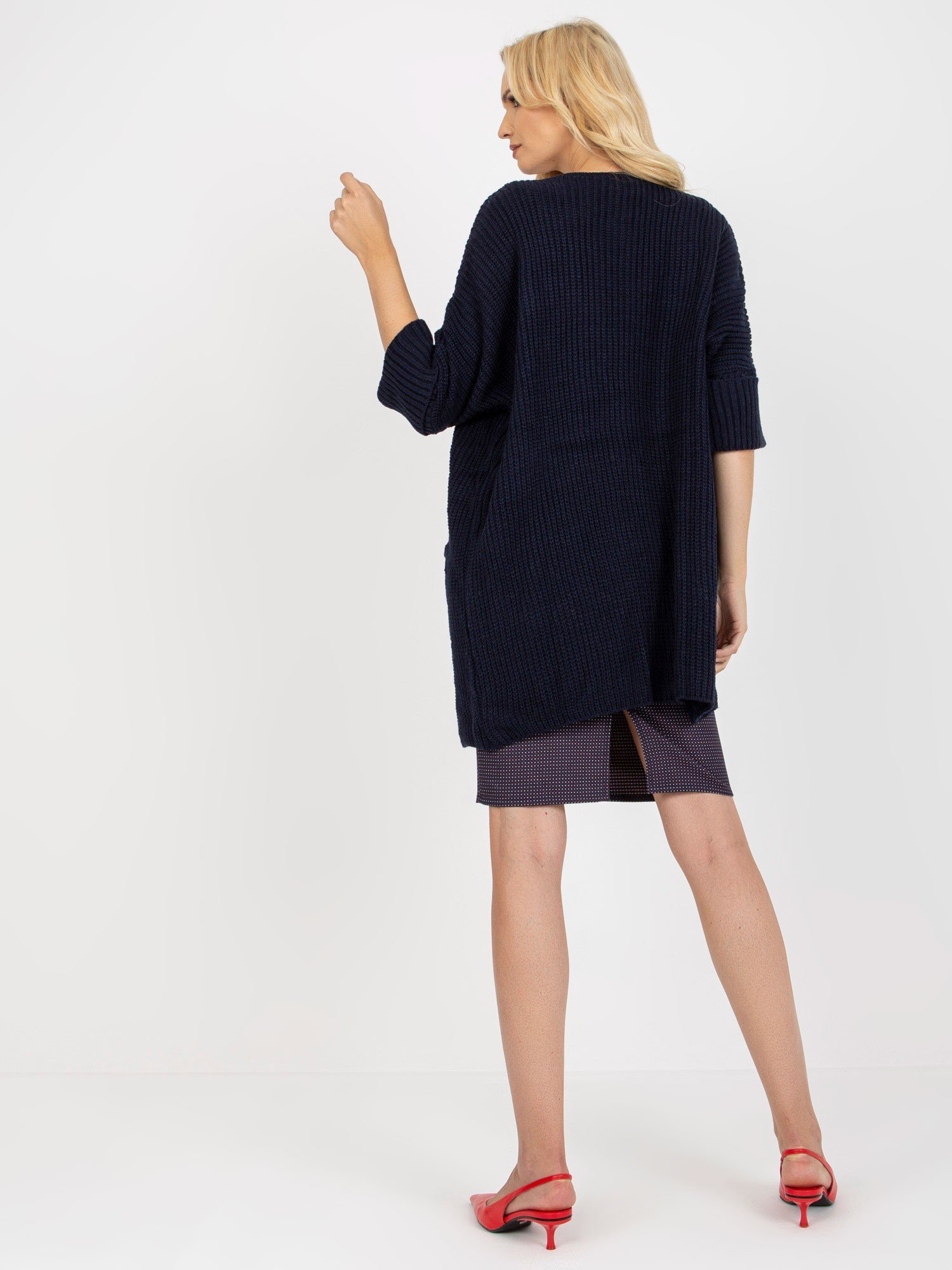 Vieno dydžio megztinio išmatavimai, matuojant lygiai: pažastų plotis - 65 cm, bendras ilgis - 78 cm, rankovių ilgis - 43 cm.