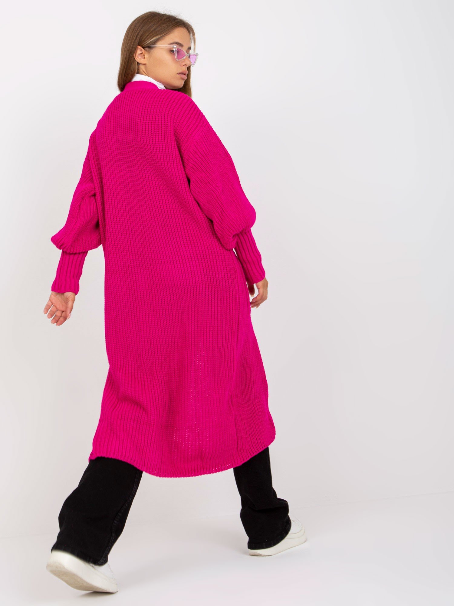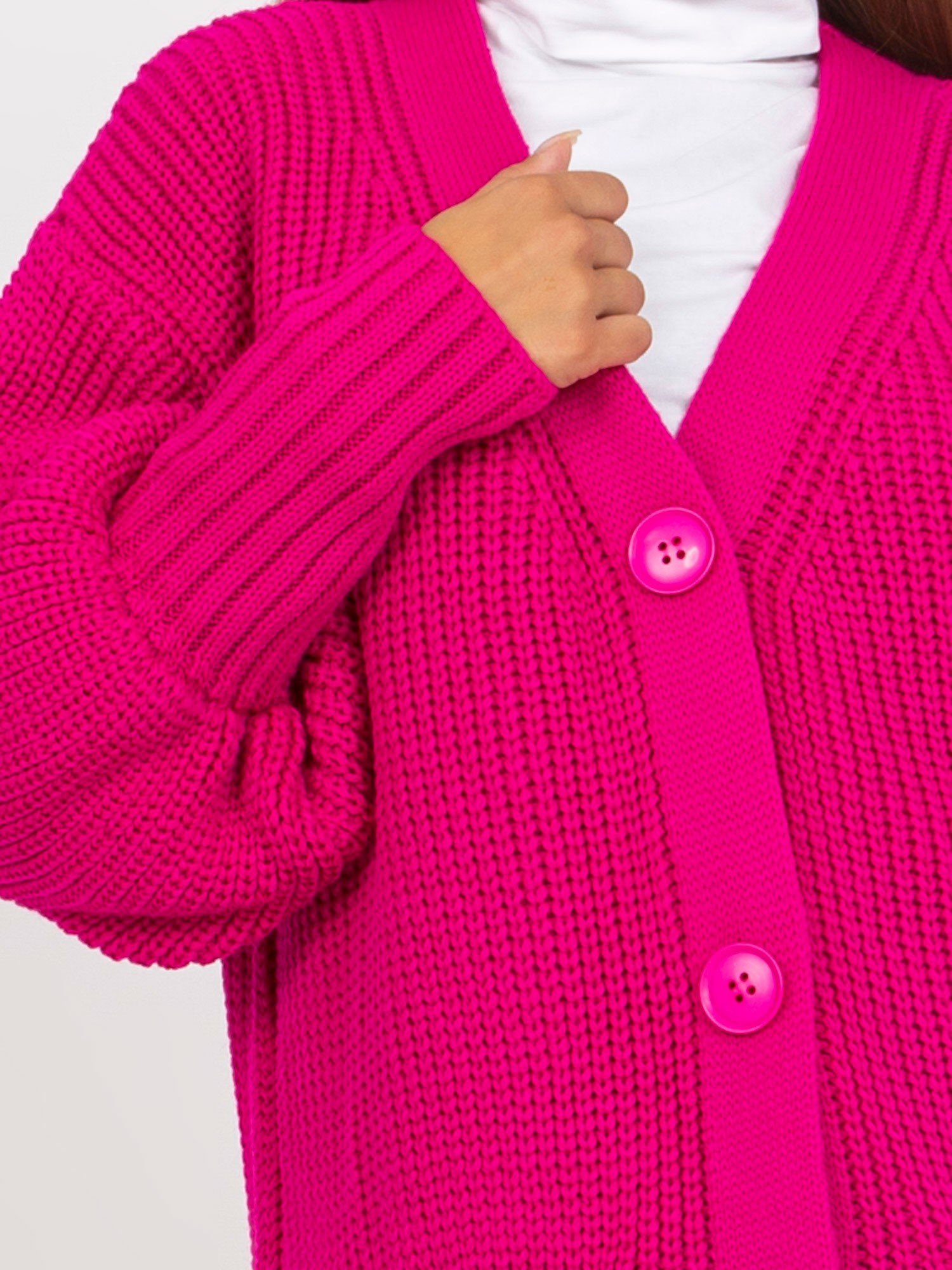 Vieno dydžio megztinio matmenys matuojant plokščią: plotis po pažastimis - 64 cm, bendras ilgis - 100 cm, rankovių ilgis - 59 cm.