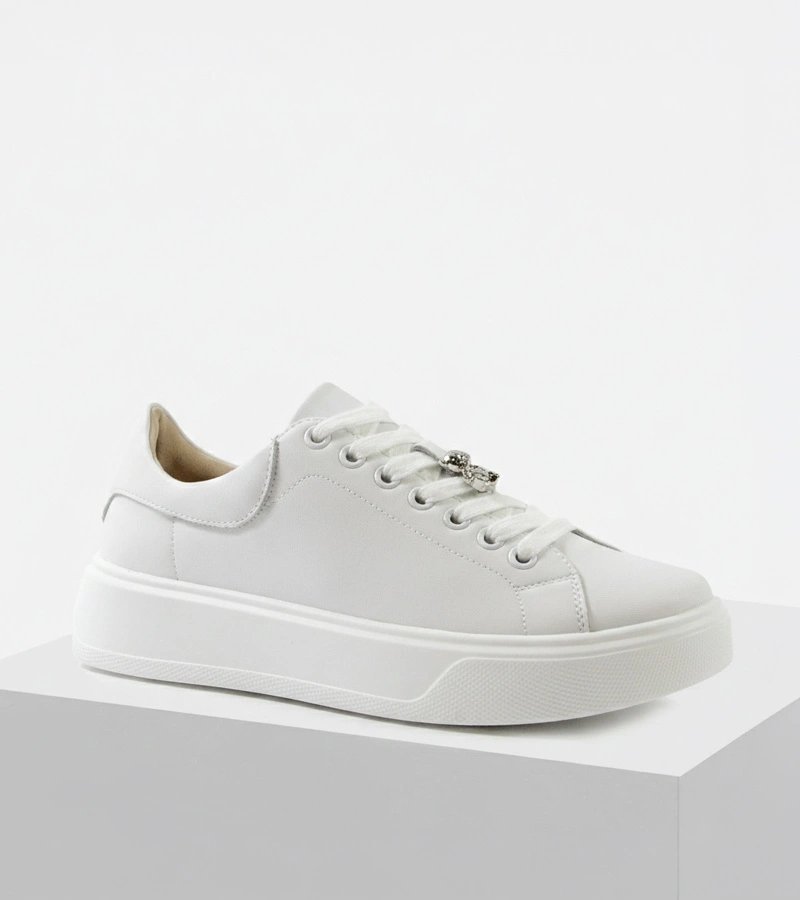 Moteriški kedai iš natūralios odos turi platformą. Balta spalva nurodyta pavadinime. Prekės ženklas Cambell.
