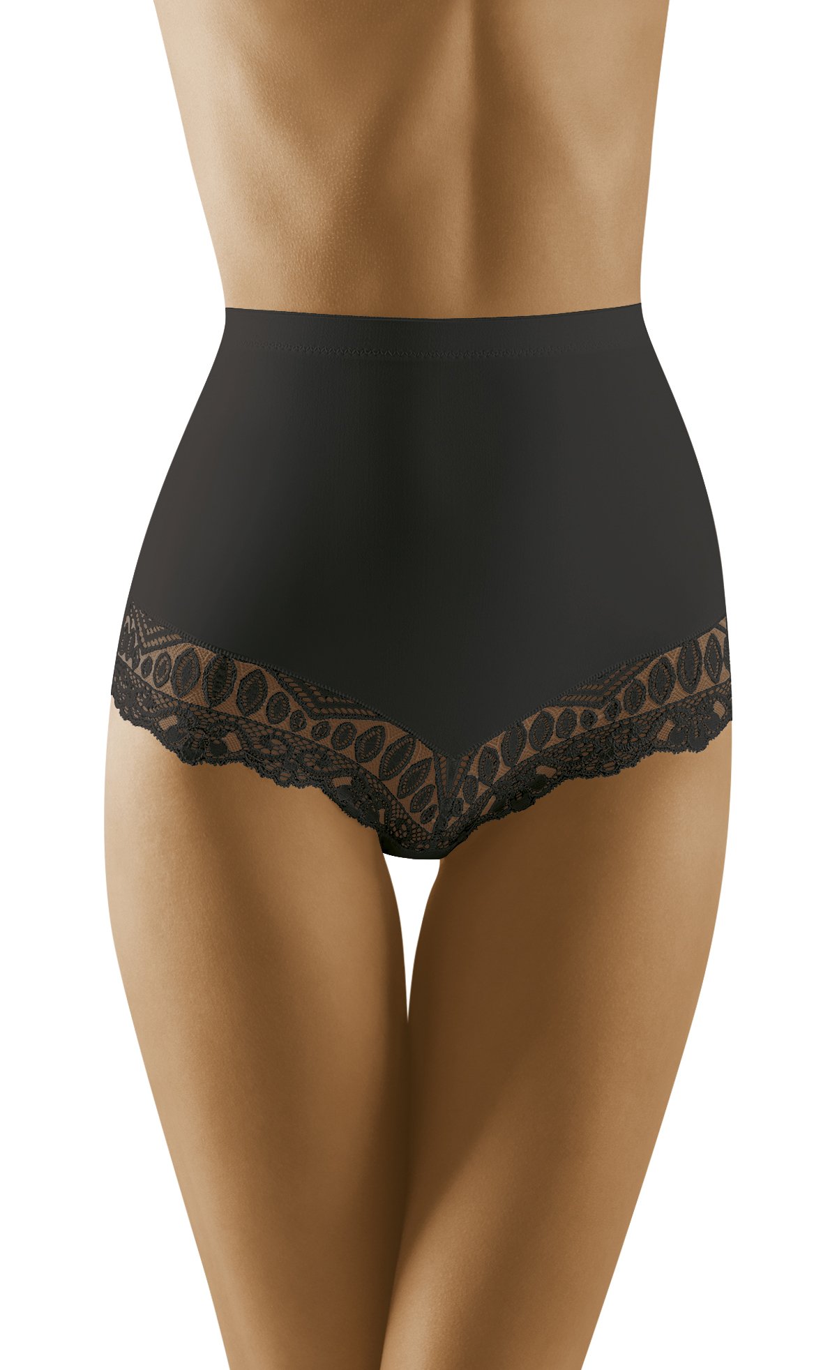 Aukštesnės kelnaitės švelniai modeliuoja kūną. Šlaunų ir sėdmenų liniją puošia žavūs nėriniai. Subtiliai išlygina pilvą ir taip pagerina kūno proporcijas. Sudėtis Sudėtis 58 % poliamidas, 42 % elastanas.