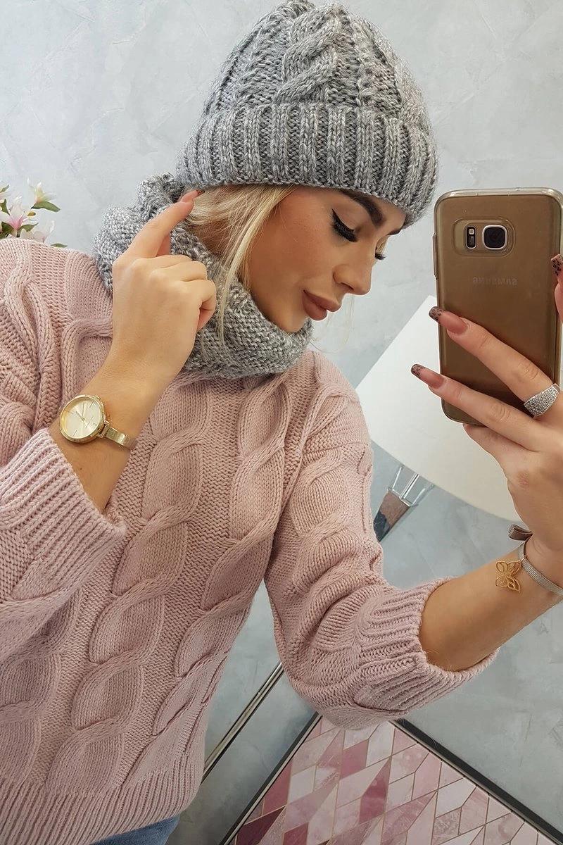 Siūlome jums šiltą komplektą, kurį sudaro kepurė ir šalikas. Komplektas išsiskiria patrauklia išvaizda ir gražia apdaila. Labai gražus raštas pavers rinkinį madingu ir praktišku aksesuaru daugelį sezonų. Kepurės ir šaliko dydis yra universalus.