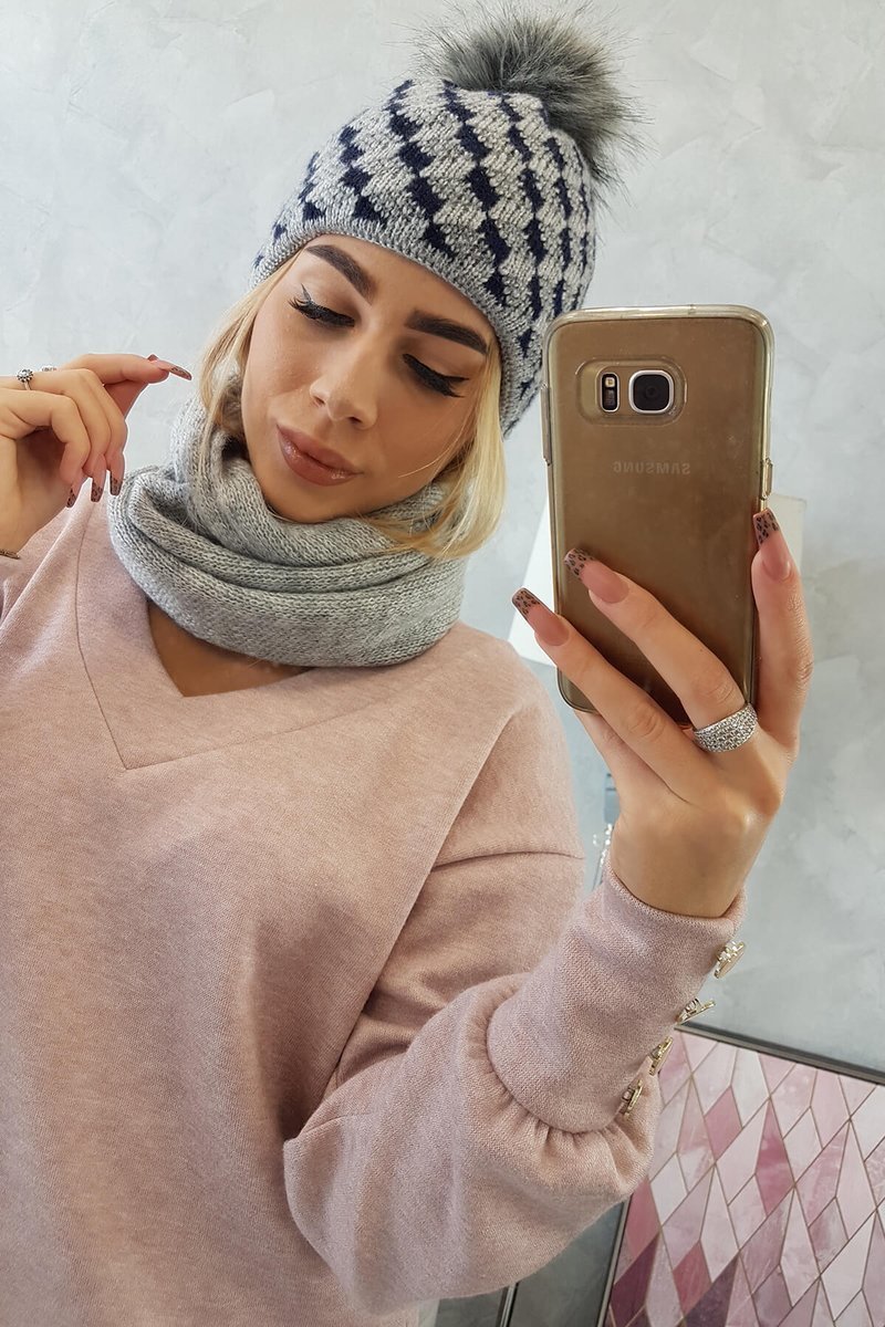 Kepurės ir šaliko komplektas pilkos spalvos