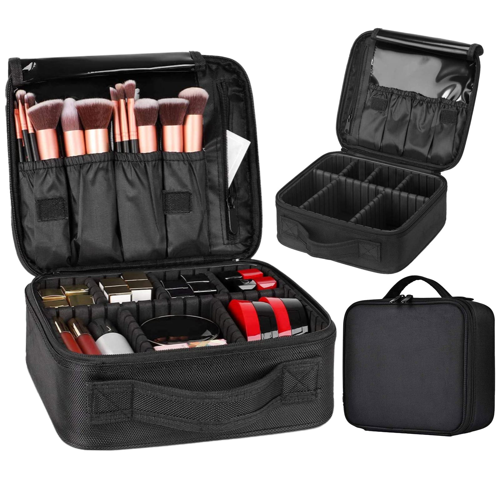- Praktiškas: Daug kišenių ir reguliuojamos pertvaros leidžia laikyti visą kosmetiką vienoje vietoje, tvarkingai ir lengvai pasiekiamoje.