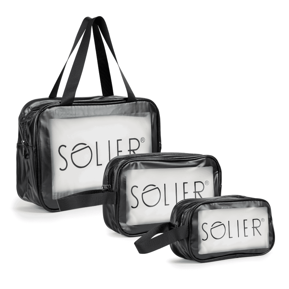 Mūsų kelionių rinkinį sudaro 3 skirtingų dydžių kosmetikos krepšiai ir 3 universalūs kelioniniai krepšiai. Viskas, ko jums reikia, kad lagaminas būtų tvarkingas ir švarus - nuo kosmetikos iki drabužių.