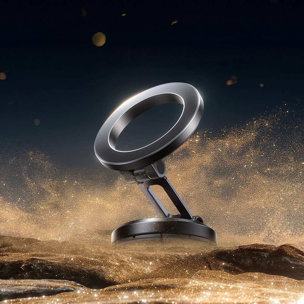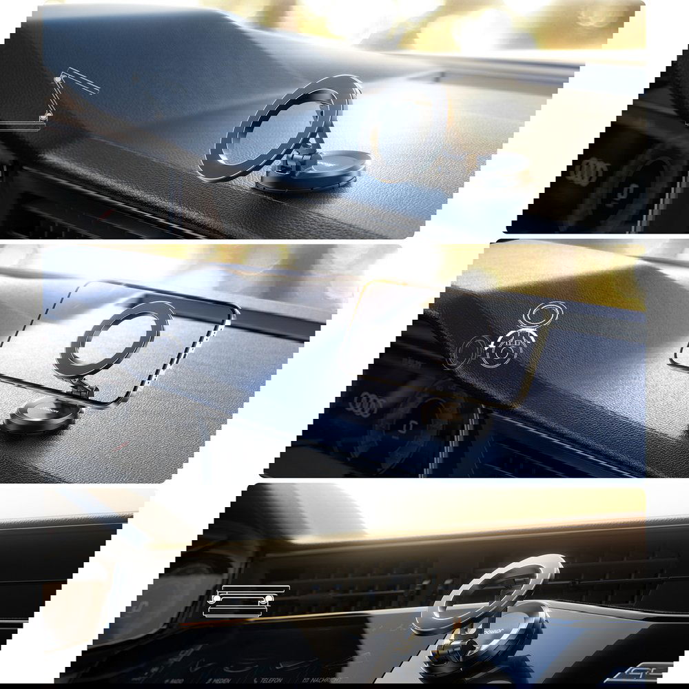 | Ypatybės | Su MagSafe, 360° reguliavimas, dviguba metalinė konstrukcija, tvirtinimas su 3M juosta ir siurbtuku |