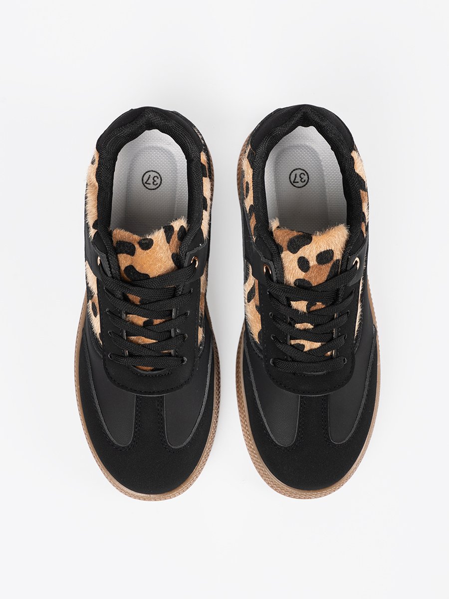 Laisvalaikio batai juodi su leopardo rašto detalėmis moterims
