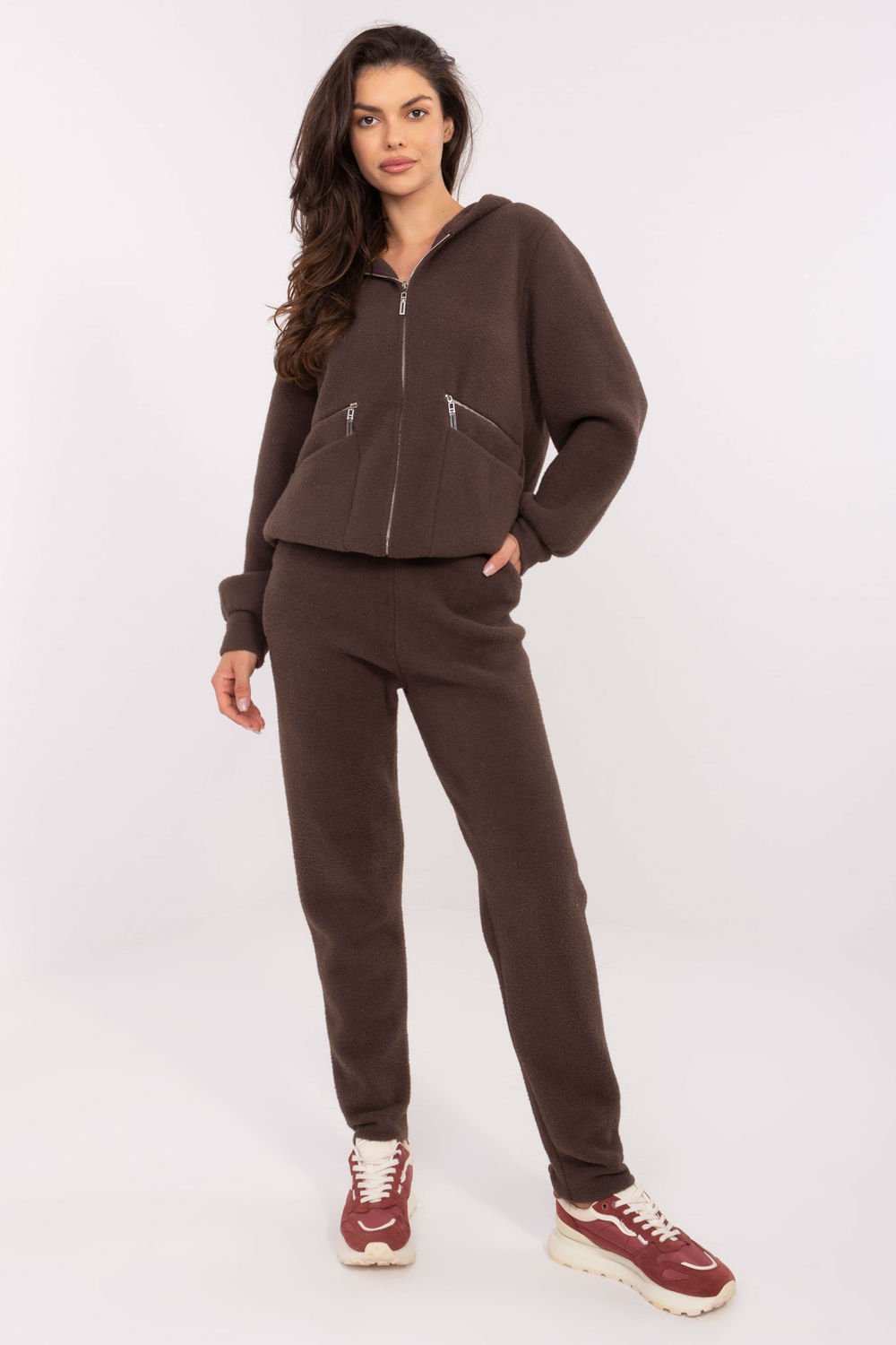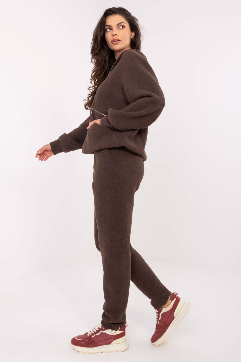 Laisvalaikio kostiumas rudas flisinis su gobtuvu ir užtrauktuku MBM