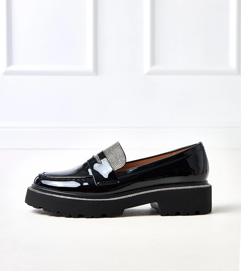 Ieškote juodų lakuotų mokasinų su platforma Laures elegancijai?