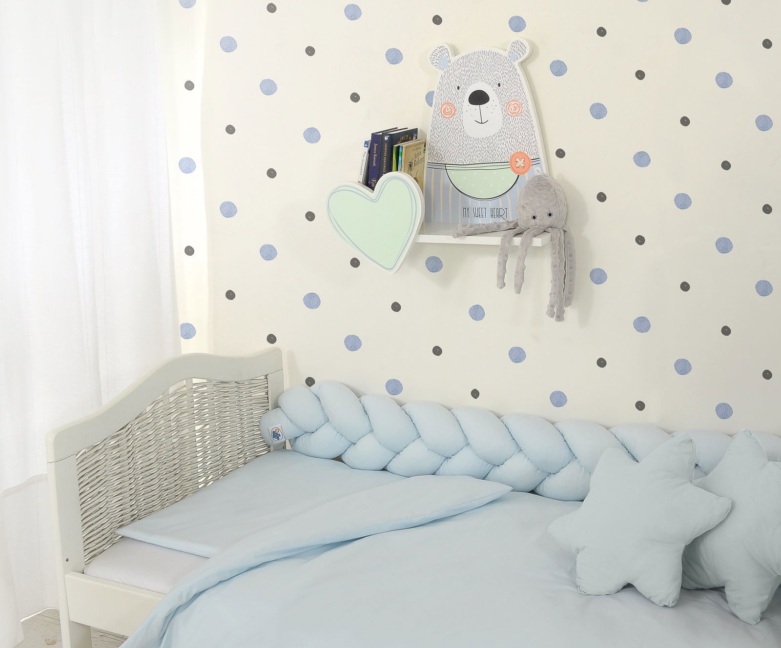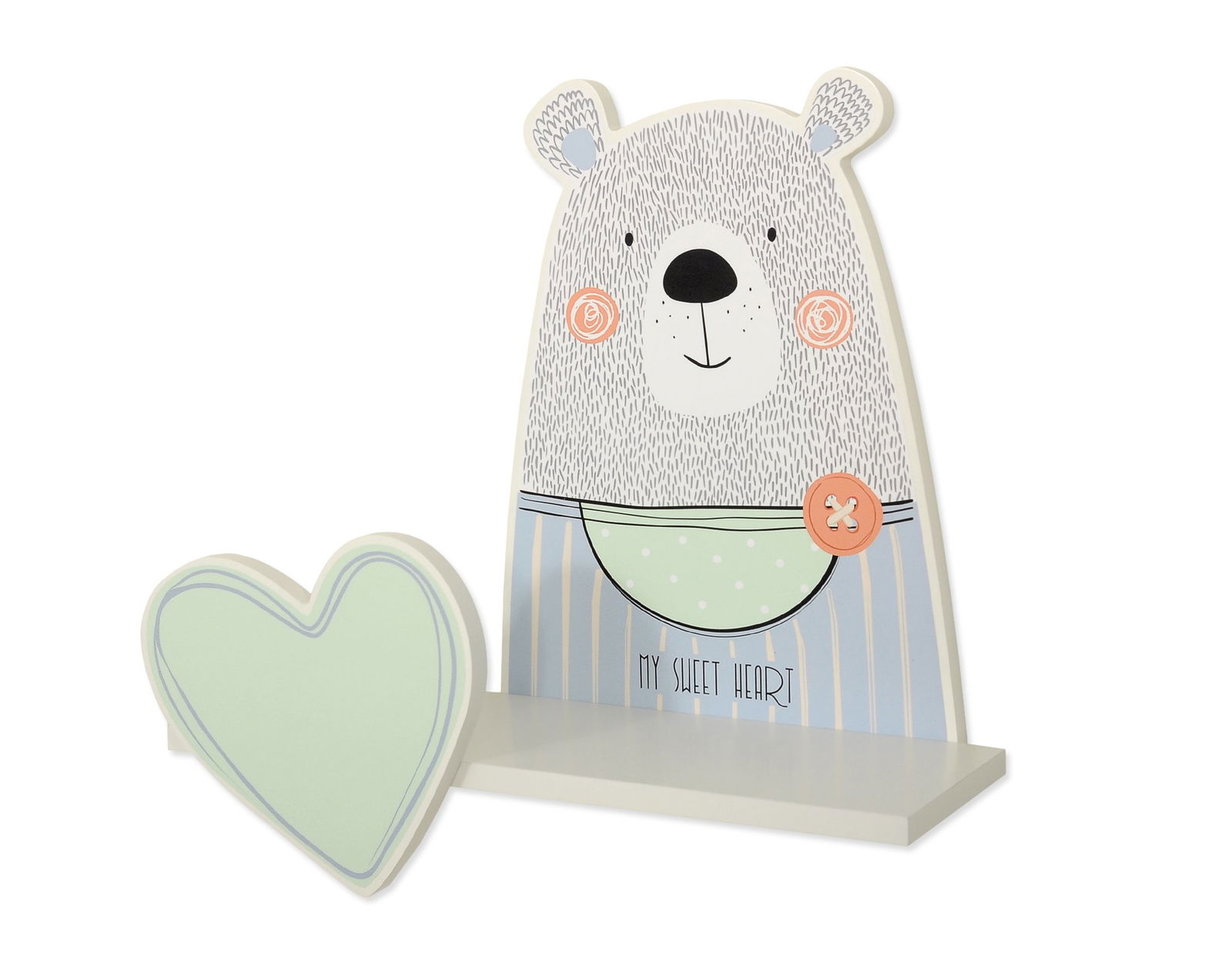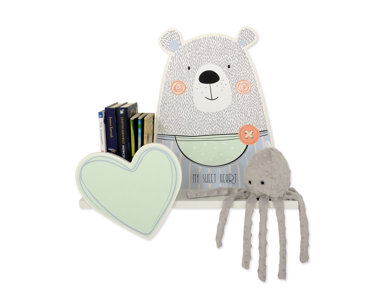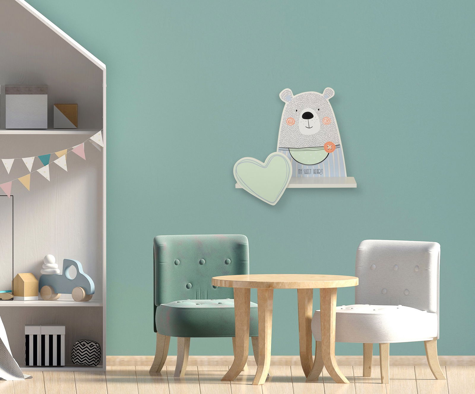 Vaikiška lentyna TEDDY BOY idealiai tinka pakabinti virš rašomojo stalo, lovytės ar žaidimų kampelio. Ji padeda palaikyti tvarką kambaryje – patogiai susidėsite mėgstamiausias pasakas, minkštus žaislus ar net mažas dekoracijas. Dėl švelnių spalvų ir žaismingo dizaino ši lentyna lengvai įsilieja į bet kokį vaikų kambario interjerą – tiek berniukų, tiek mergaičių kambariuose.