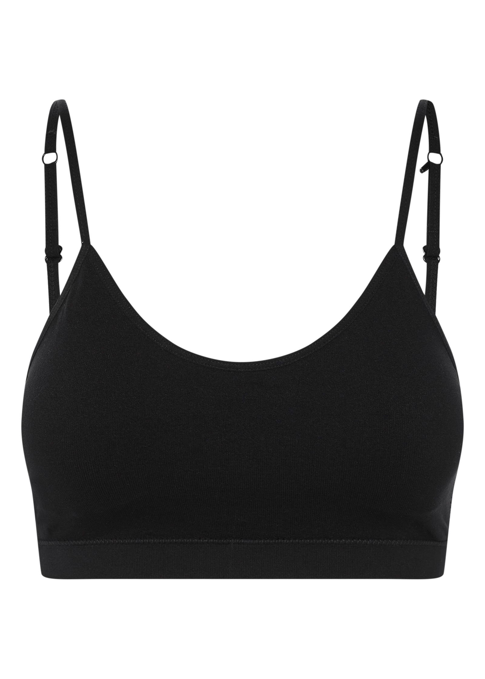 Klasikinė juoda spalva su subtilia briaunuota tekstūra. Sportinio tipo siluetas, reguliuojamos petnešėlės ir išimami kaušeliai leidžia pritaikyti liemenėlę pagal save.