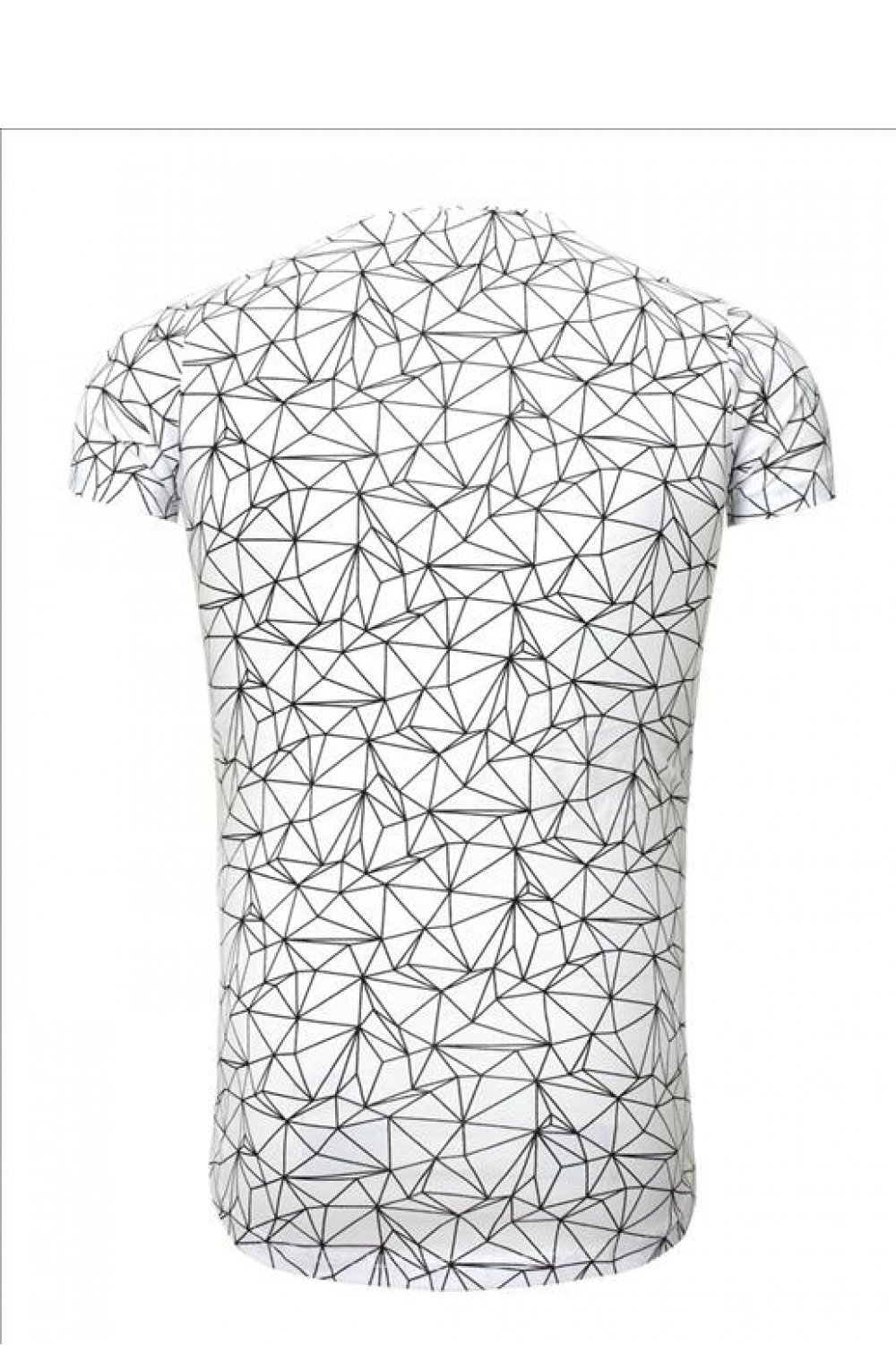 Balti vyriški marškinėliai trumpomis rankovėmis. Marškinėliai pagaminti iš audinio su voratinklio raštu.