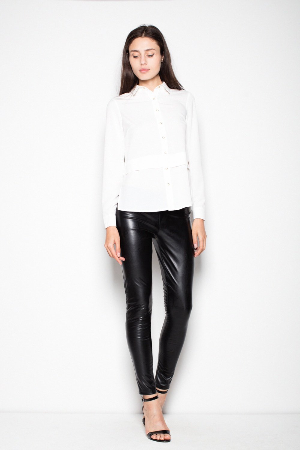 Elegantiški marškiniai su apykakle ir ilgomis rankovėmis. Šonuose - iškirptės. Stilingi ir elegantiški, tinkantys bet kokiai progai.