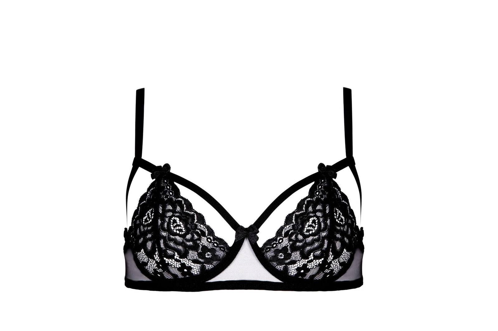 Juodas 2 dalių rinkinys, kuris tikrai padarys įspūdį. Baigtas plonais dirželiais, kurie jausmingai puošia kūną. Komplektą puošia nuostabaus ažūrinio rašto nėriniai. Liemenėlė su pakietinimais, pakelia ir gražiai pabrėžia krūtinę. Reguliuojamos petnešėlės. Kelnaitės jausmingai puošia sėdmenis. Štai nepamirštama kompozicija, kurioje jausitės ypatinga.