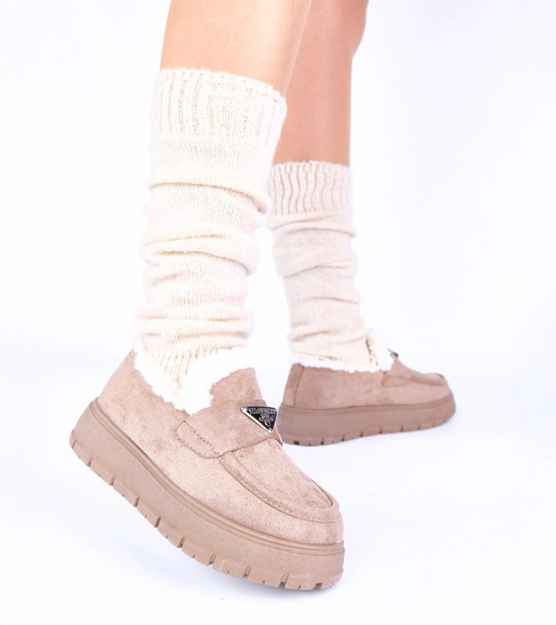 Smėlio spalvos mokasinai su platforma ir pašiltinimu – stilingam komfortui kasdien