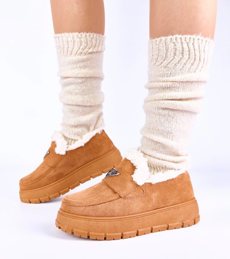 Rudi mokasinai ant platformos su pašiltinimu – stilingam komfortui vėsiuoju sezonu