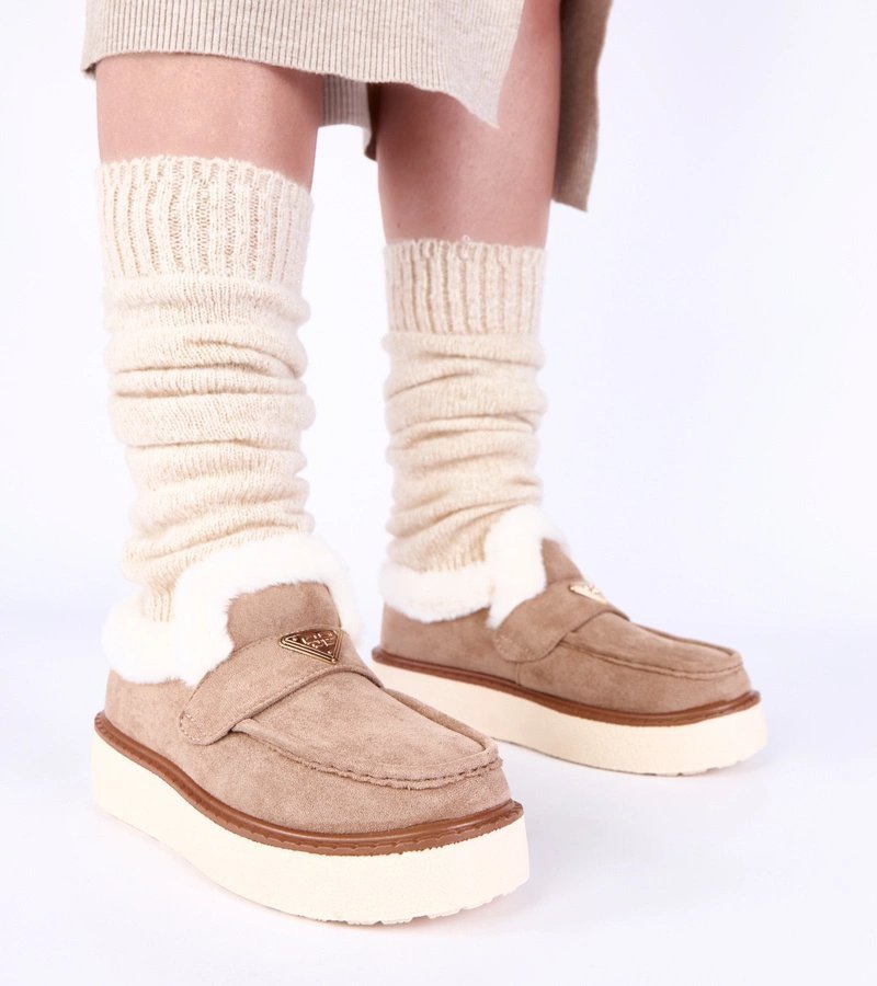 Mokasinai tamsiai smėlio Loafy su pašiltinimu – komfortui ir šilumai vėsiomis dienomis.