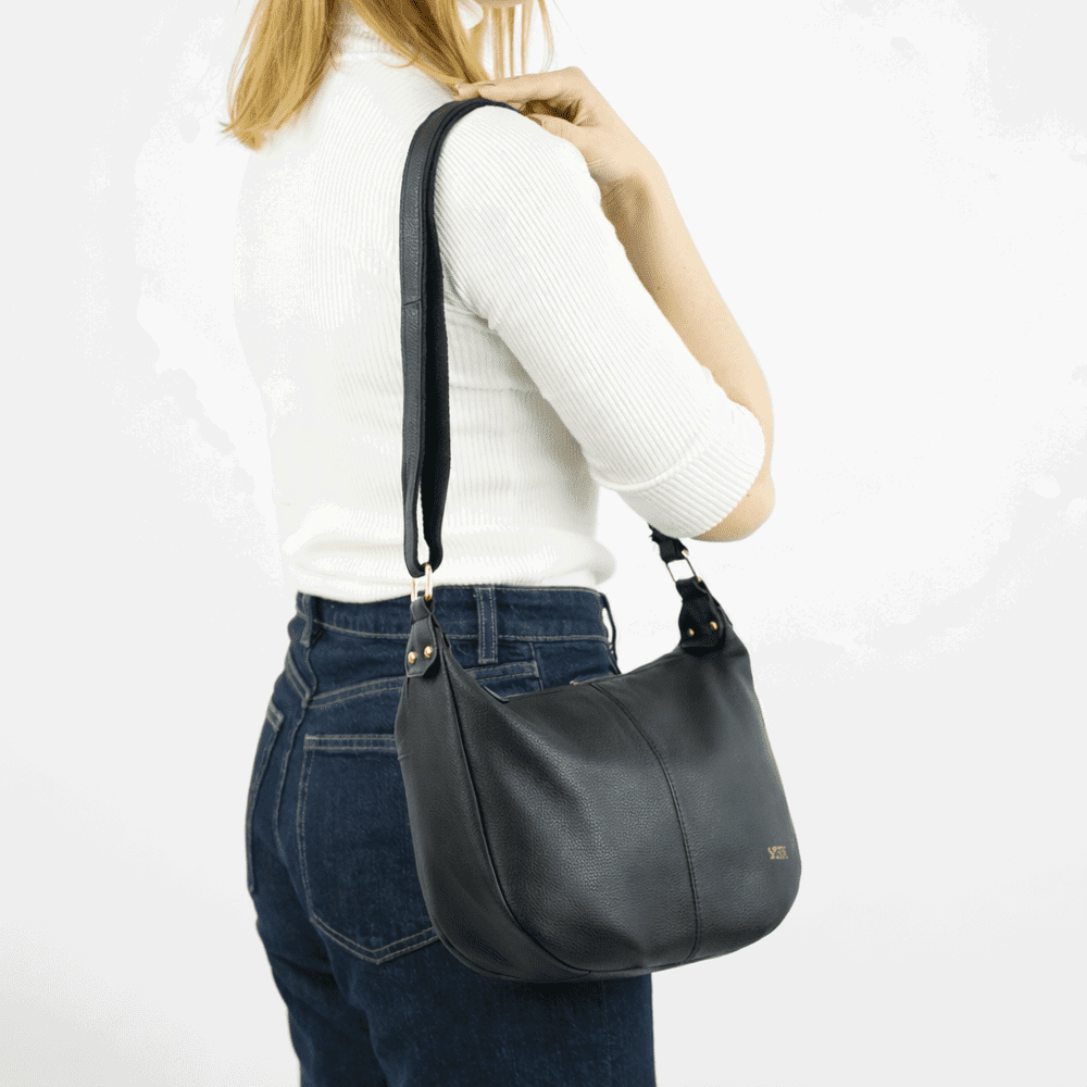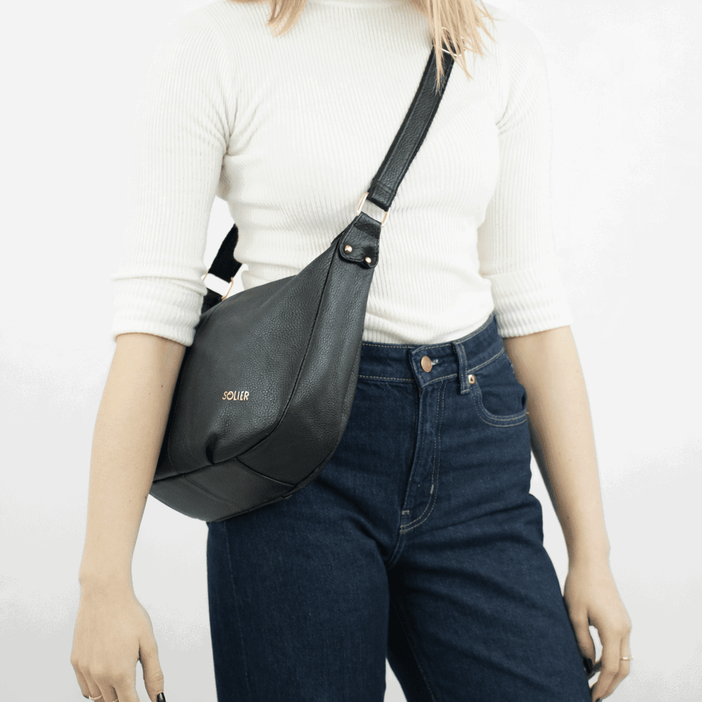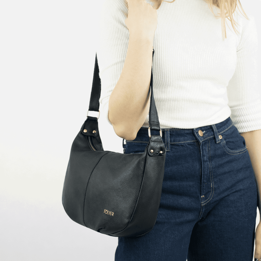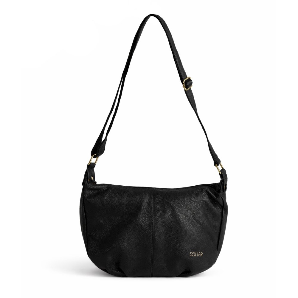 Moteriška juoda rankinė bagetės formos iš natūralios odos Solier