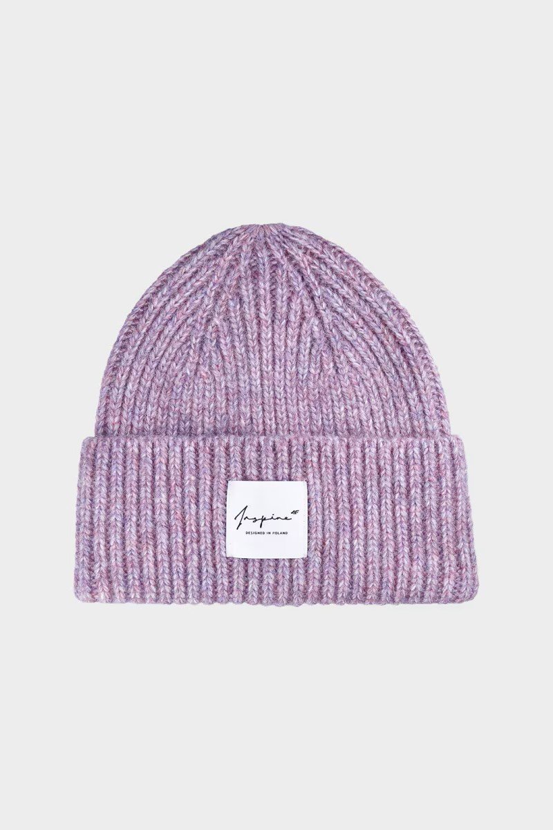 Moteriška kepurė su 10 % vilnos. Pagaminta iš sintetinio audinio, turi atlenkiamą manžetą ir klasikinį beanie fasoną. Prekės ženklas 4F.